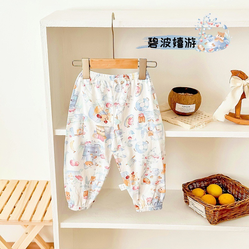 어린이 모기 방지 바지 아기 캐주얼 스포츠 바지 여름 얇은 바지 소년 소녀 블루머스 아기 레깅스스토어 가기