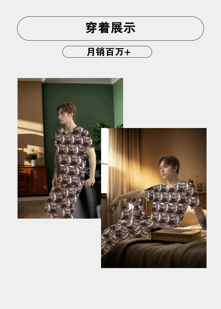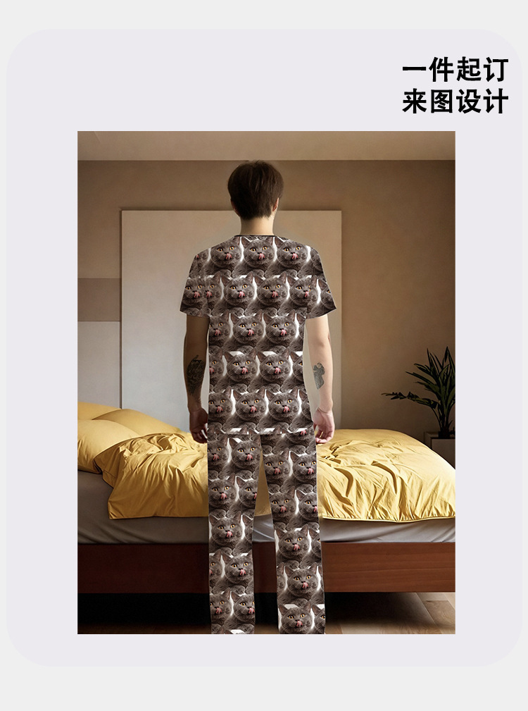맞춤형 디지털 프린트 모달 유럽 및 미국 스타일의 라운드 넥 반팔 바지 남성용 홈웨어 투피스 세트스토어 가기
