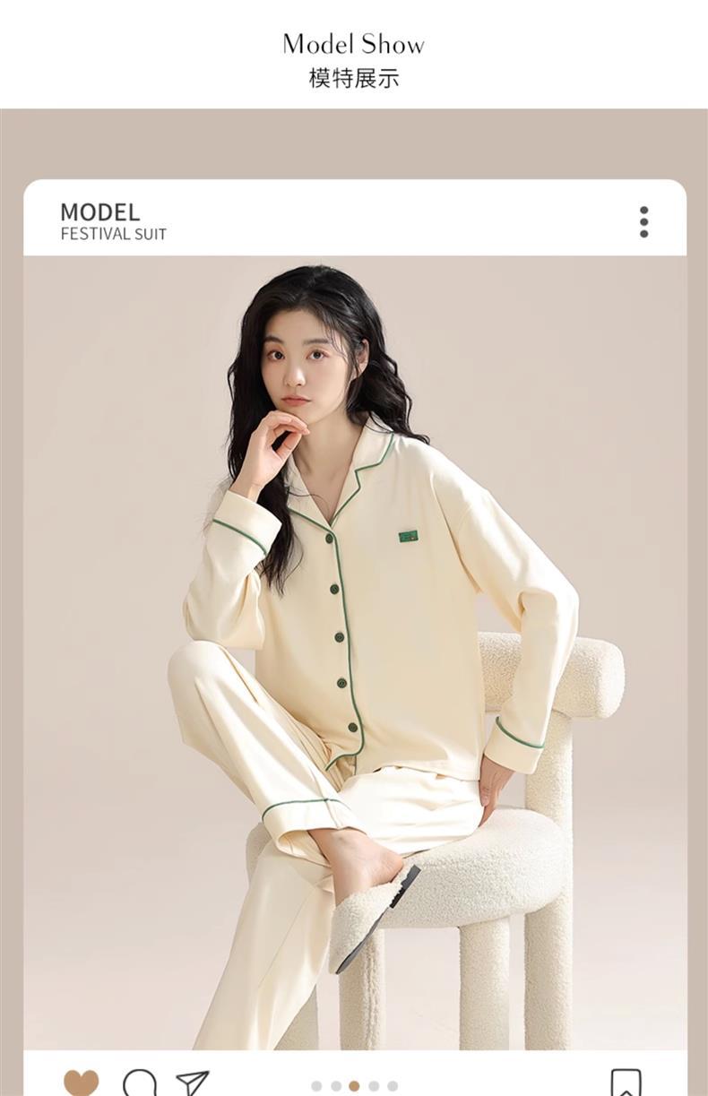 순수 코튼 잠옷 여성 봄, 가을 2024 새로운 코튼 얇은 긴 소매 바지 플러스 사이즈 홈웨어 세트는 외부에서 착용 가능스토어 가기