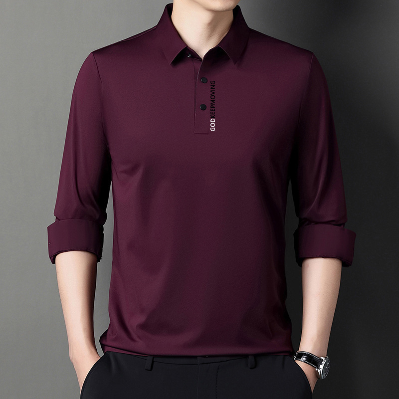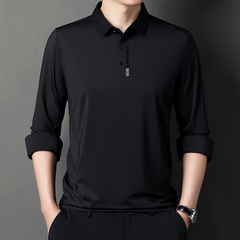 2022 새로운 긴팔 옷깃 티셔츠 남성용 아이스 실크 바닥 셔츠 프린트 얇은 봄, 가을 티셔츠 남성용 폴로 셔츠 트렌디