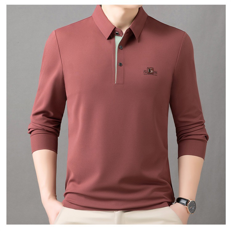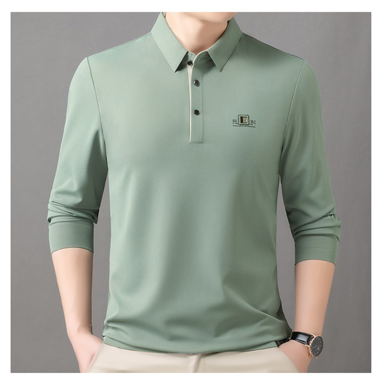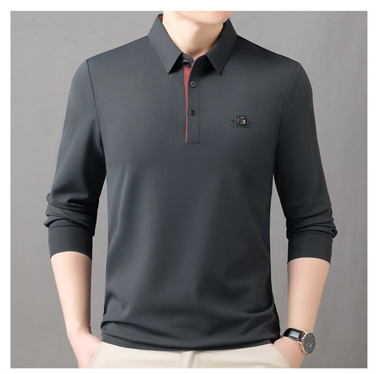 긴팔 2025 봄과 가을 티셔츠 남자 캐주얼 옷깃 올 매치 폴로 셔츠 중년베이스 셔츠 남성용 티셔츠