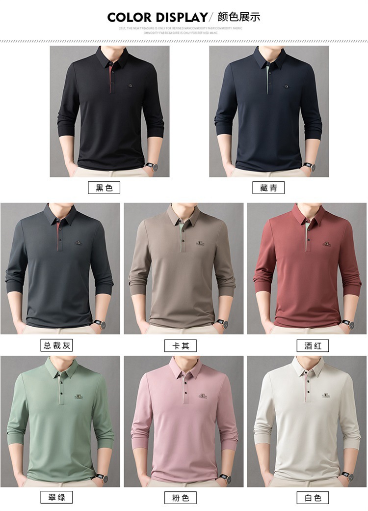 긴팔 2025 봄과 가을 티셔츠 남자 캐주얼 옷깃 올 매치 폴로 셔츠 중년베이스 셔츠 남성용 티셔츠스토어 가기