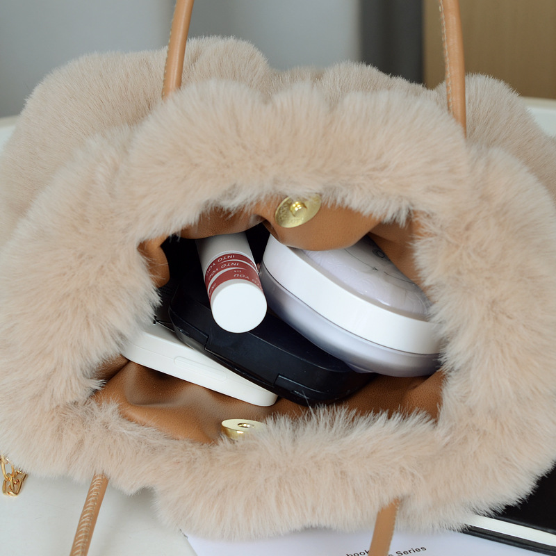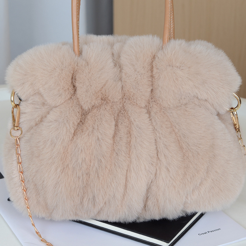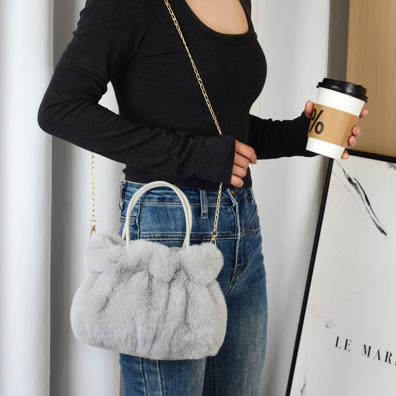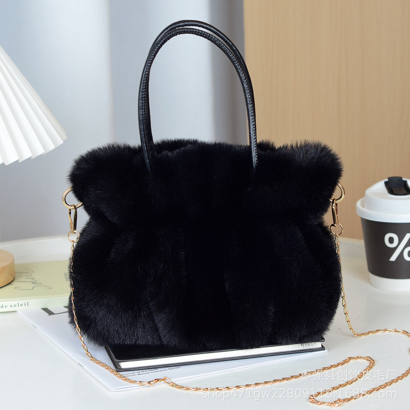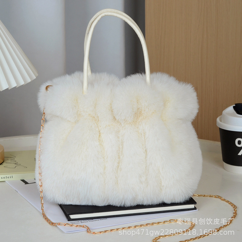 핸드백 모피 가방 여성 가을, 겨울 새로운 주름 하이 엔드 플러시 패션 가방 2024 싱글 숄더 크로스 바디 백 핫 스타일스토어 가기