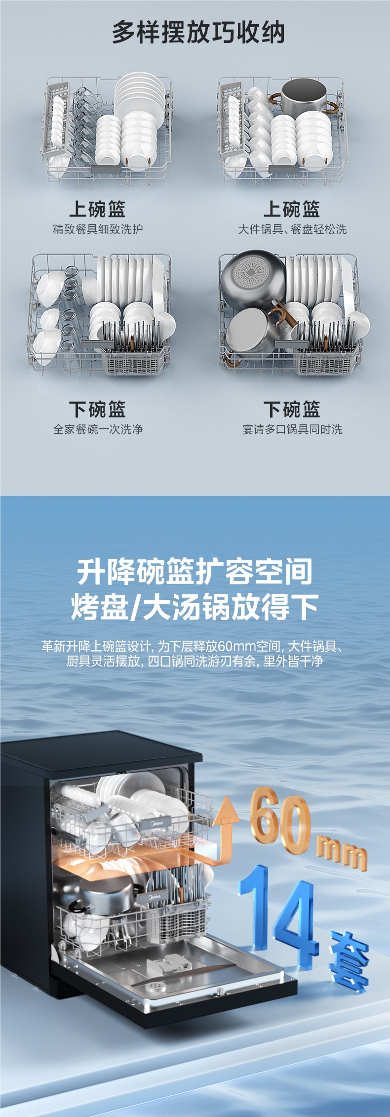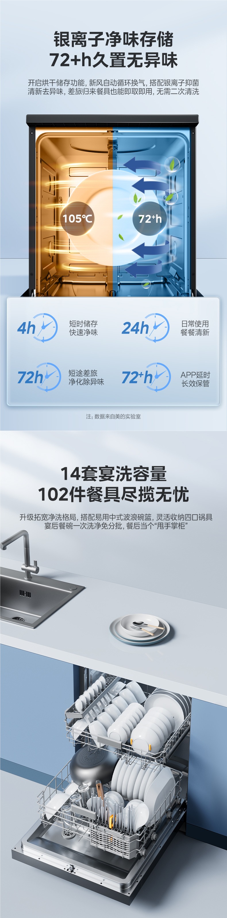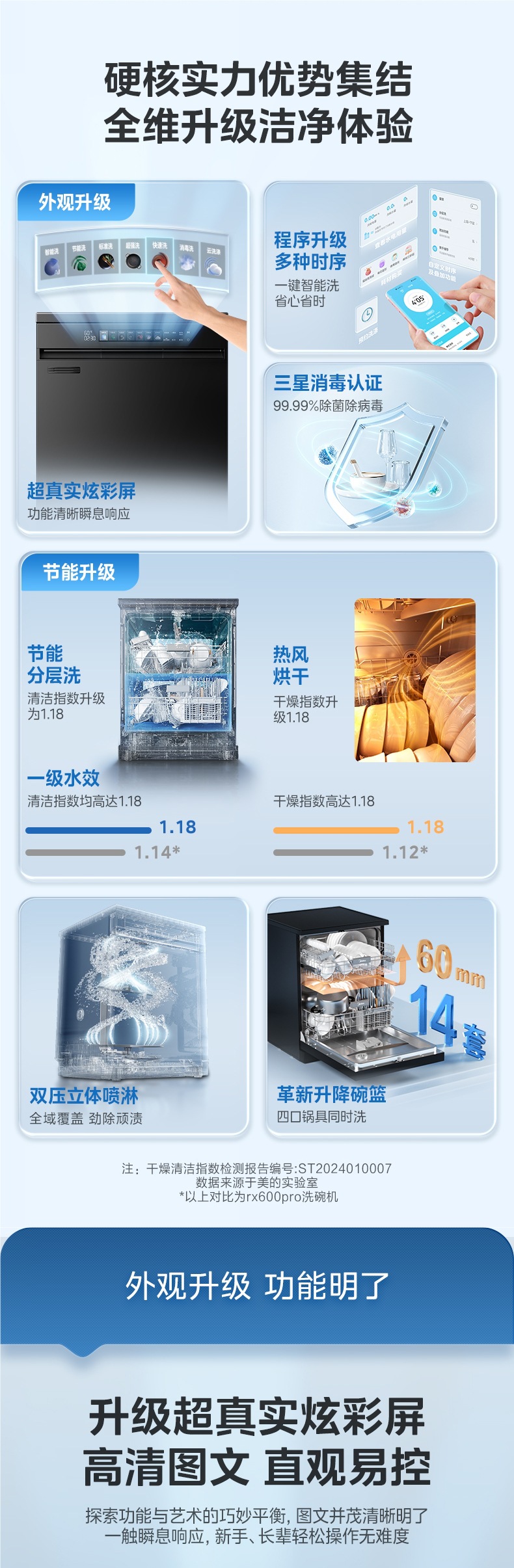 []Midea의 24년 새 제품 식기세척기 가정용 완전 자동 내장형 14세트 RX600Max