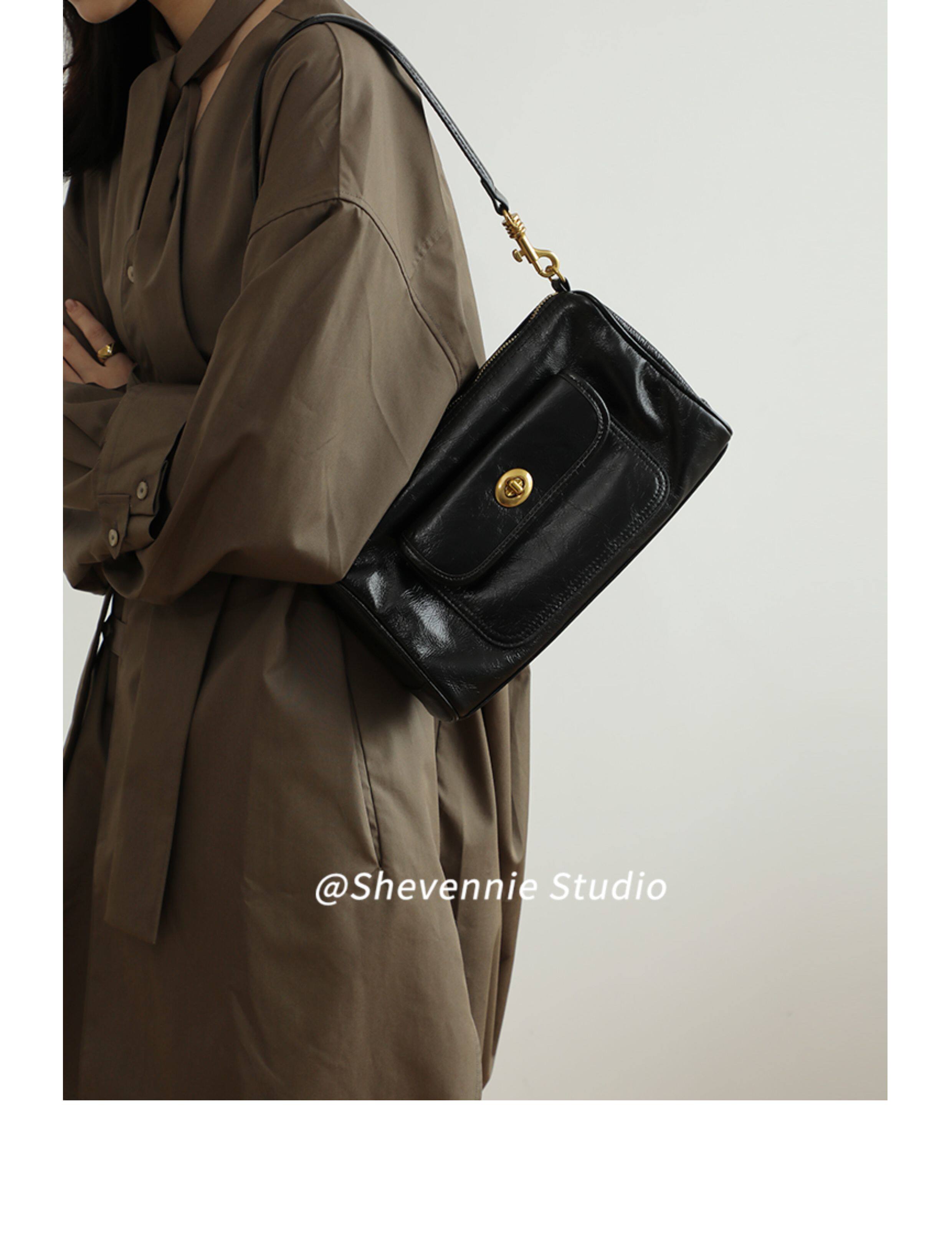 레트로 스타일 심플 탑 레이어 Cowhide Underarm 가방 여름 새로운 여성 가방 올 매치 솔리드 컬러 작은 스퀘어 가방 숄더 크로스 바디 백