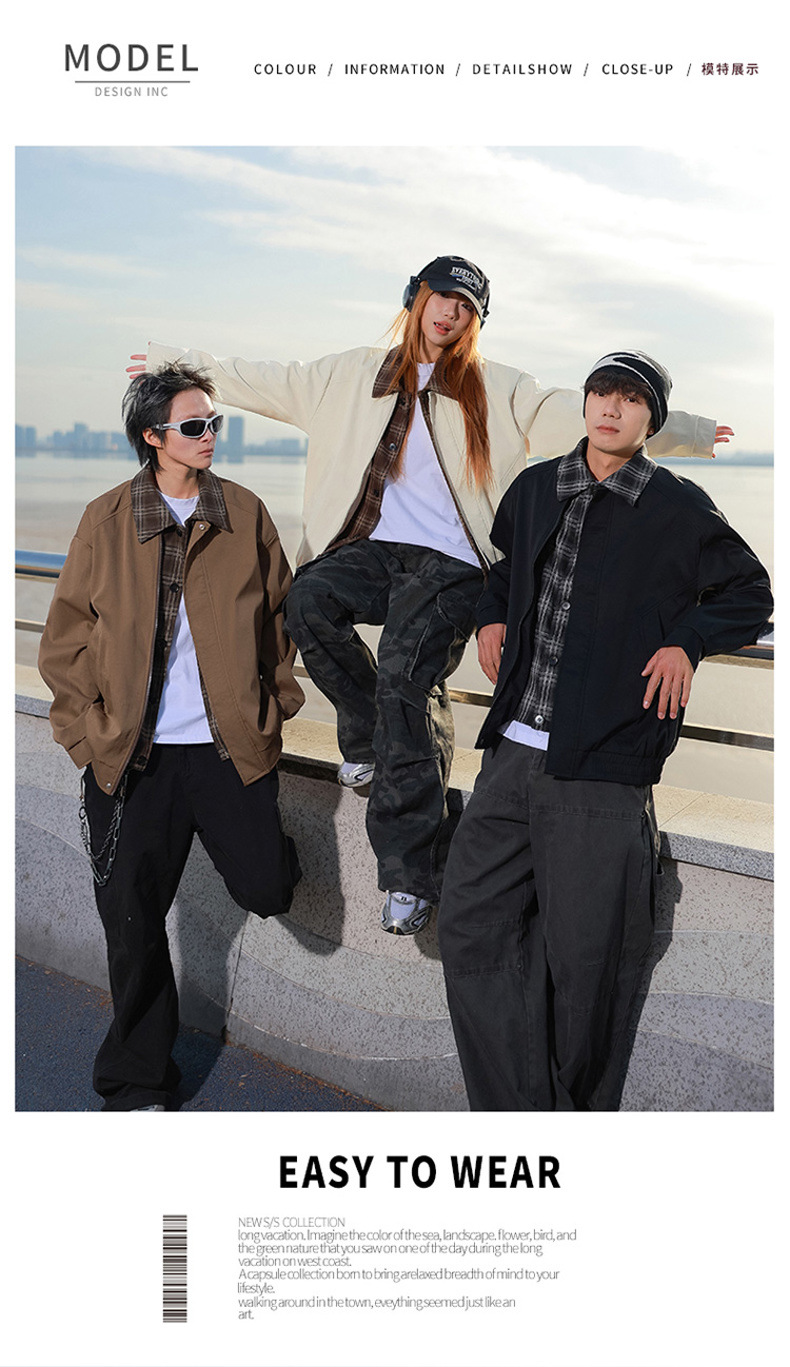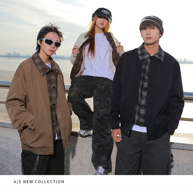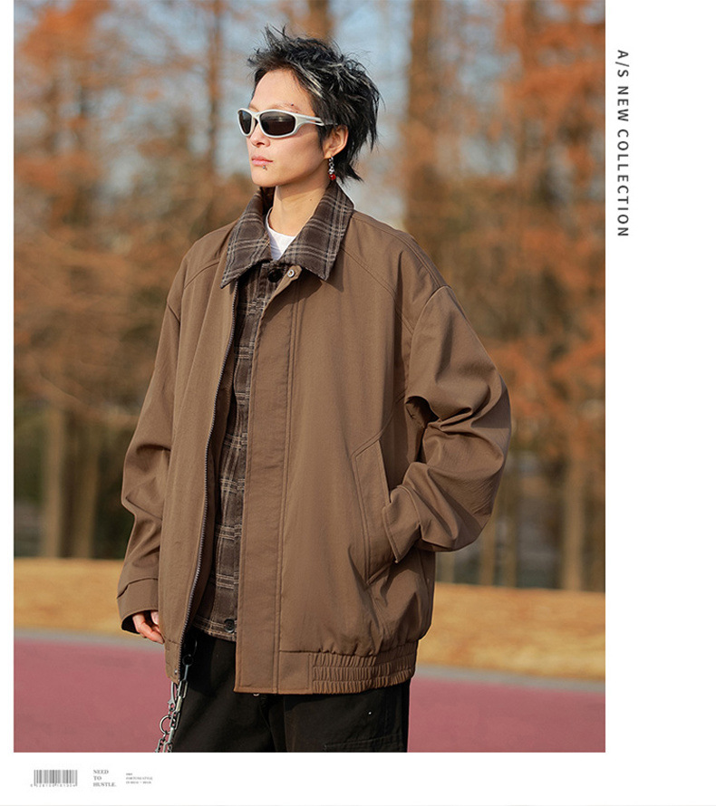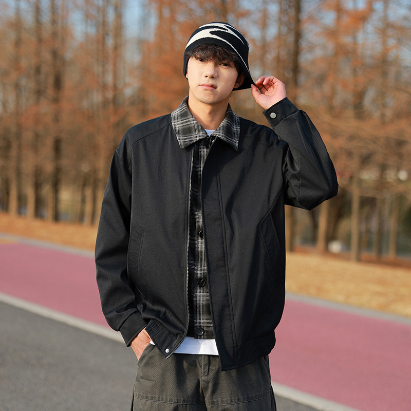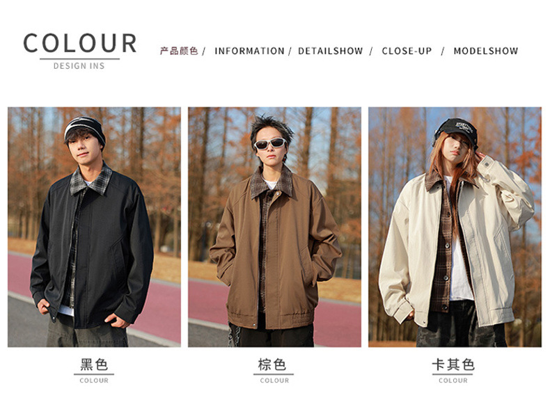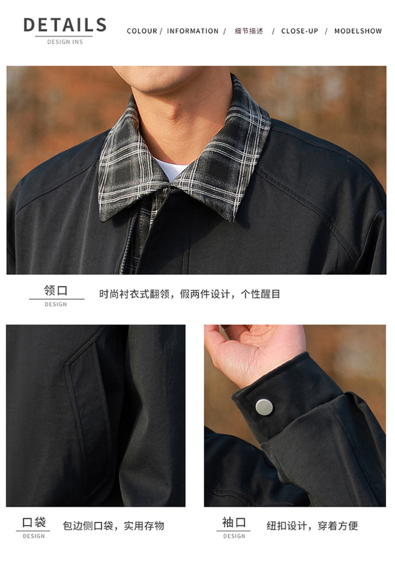 夹克男新款复古男装宽松三防外套潮牌春秋翻领假两件休闲男士上衣스토어 가기