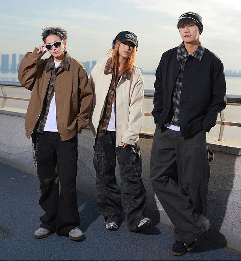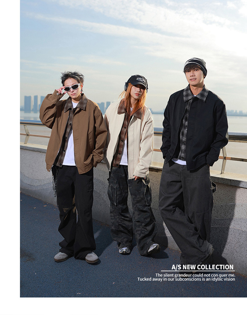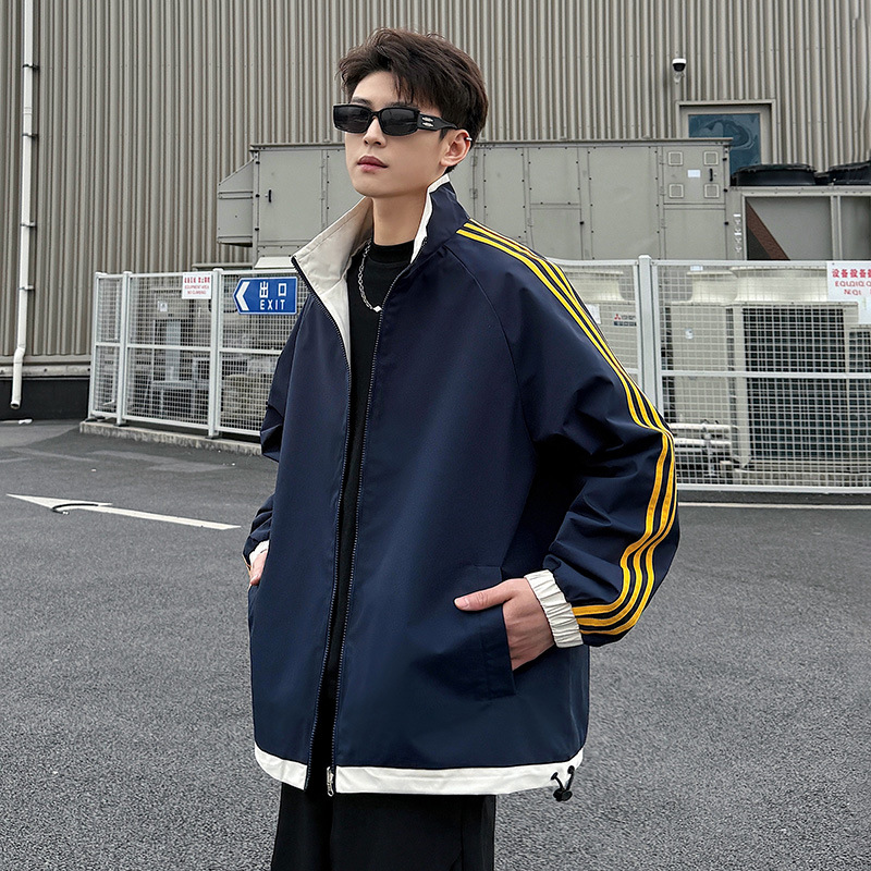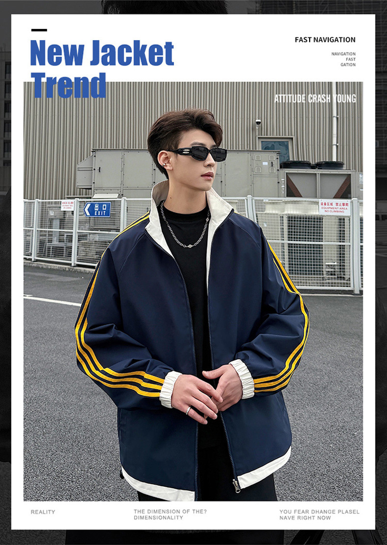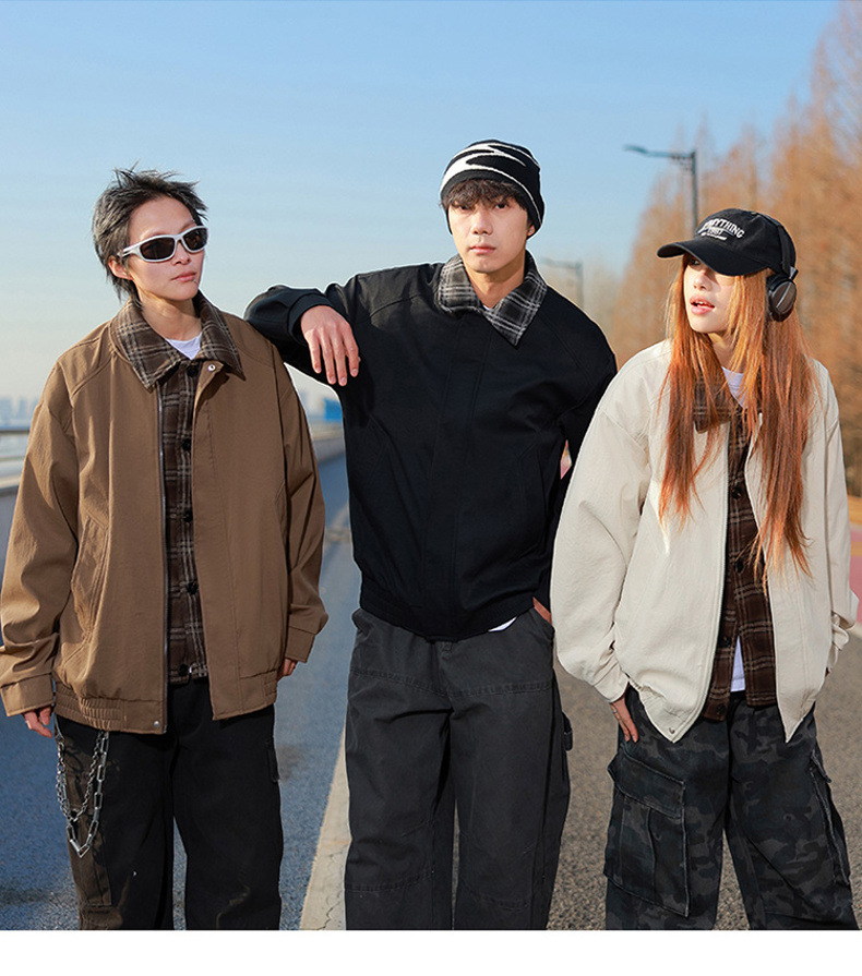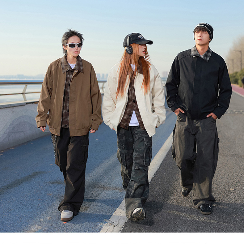 夹克男新款复古男装宽松三防外套潮牌春秋翻领假两件休闲男士上衣스토어 가기