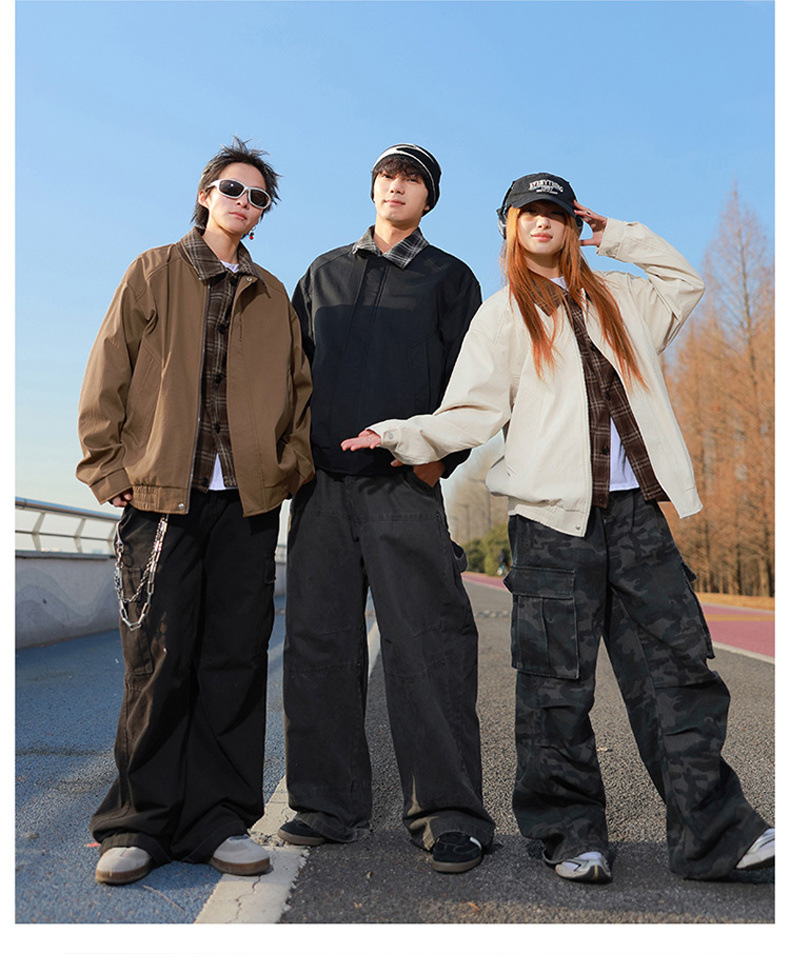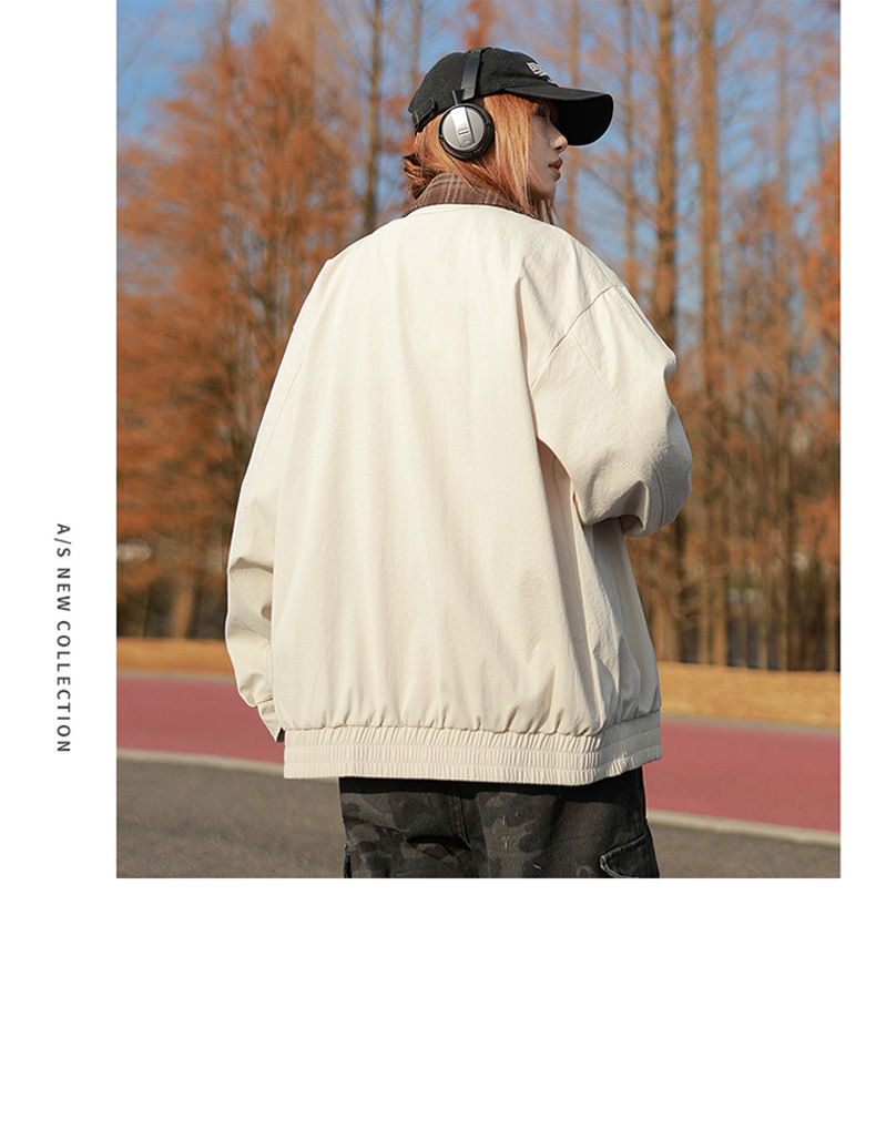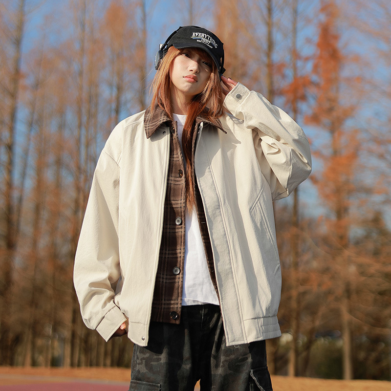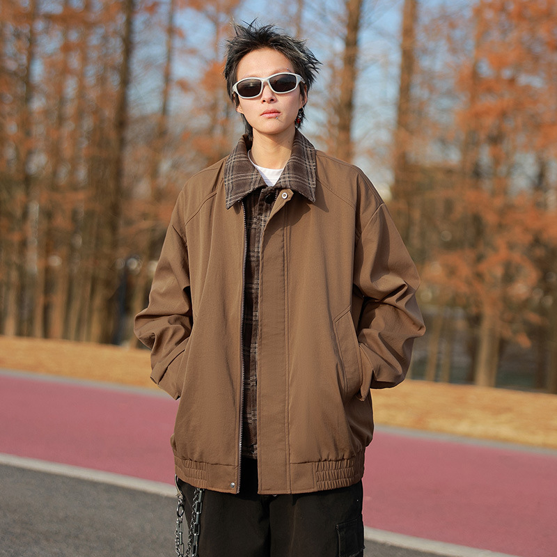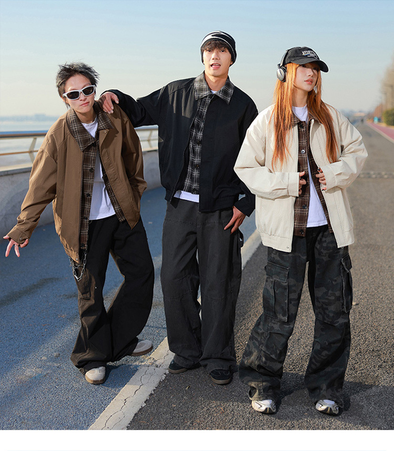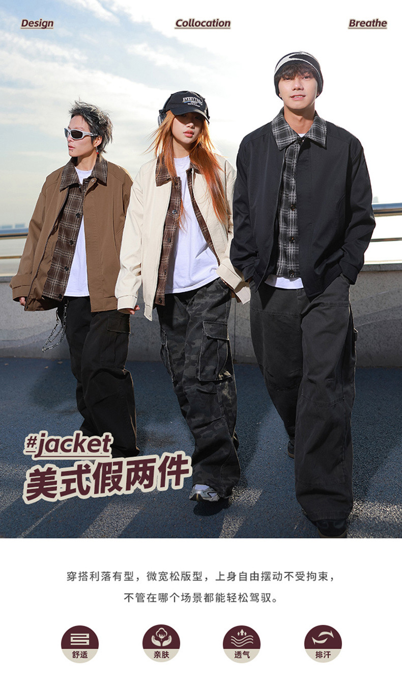 夹克男新款复古男装宽松三防外套潮牌春秋翻领假两件休闲男士上衣