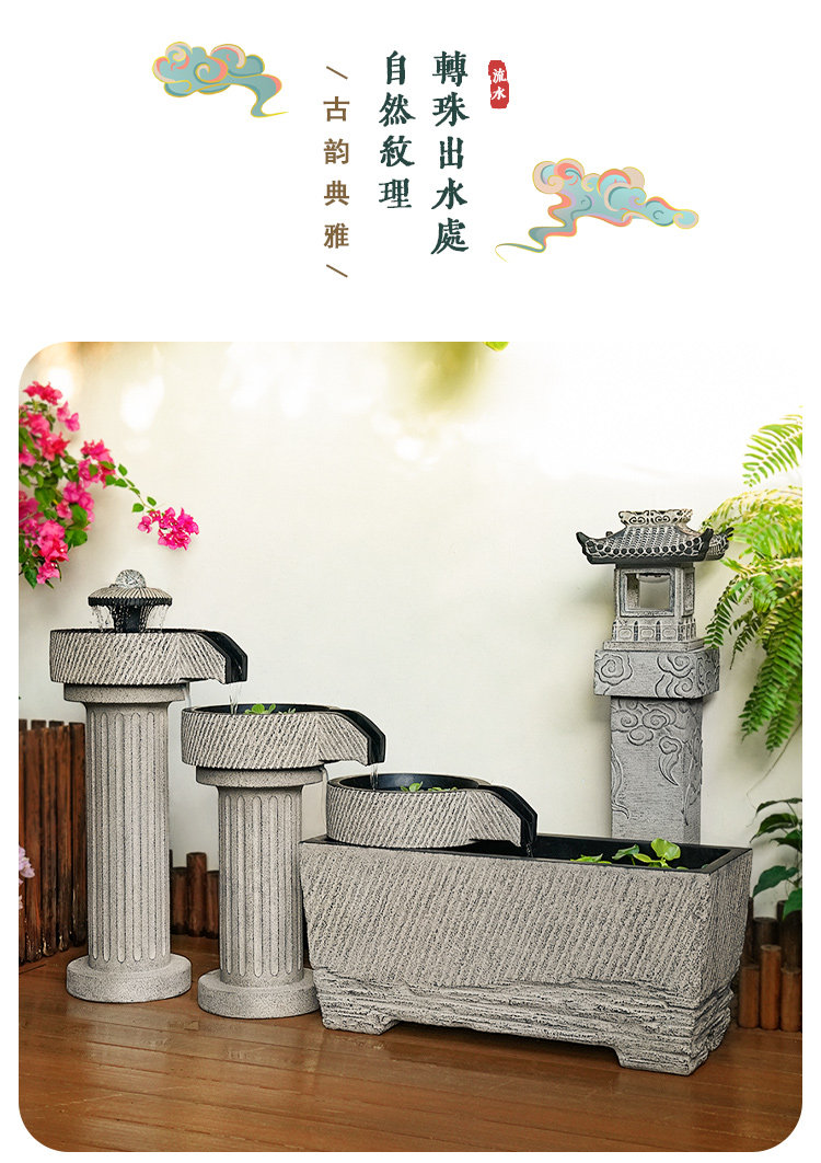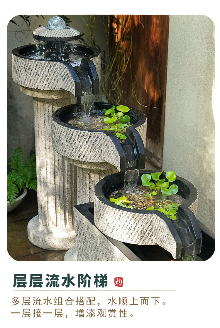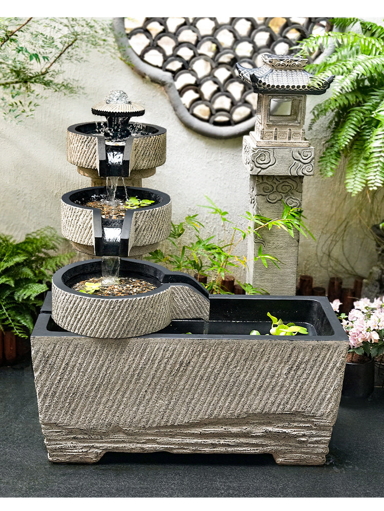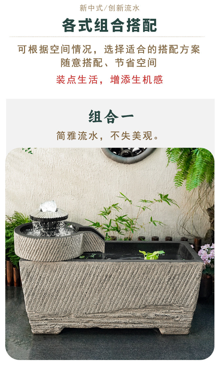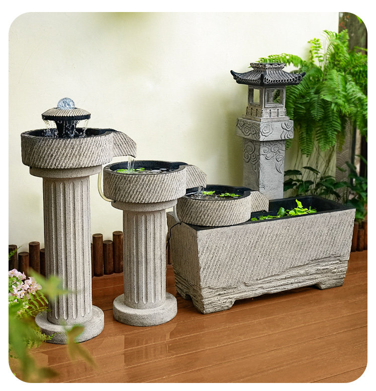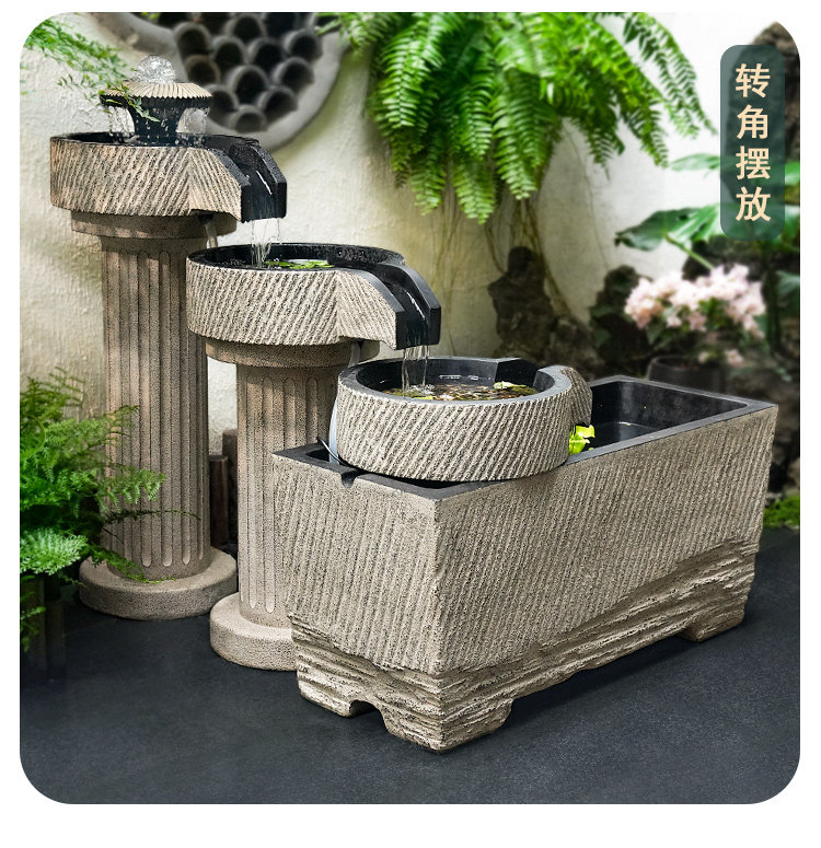 야외 안뜰 정원 중국식 흐르는 물 장식품 순환 물 마당 바닥에 있는 완성된 수조 발코니 1층 물고기 연못