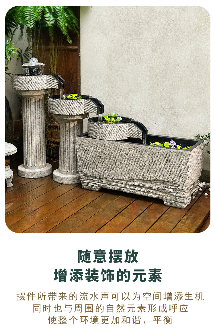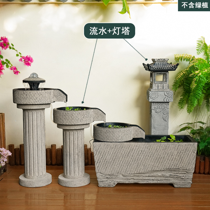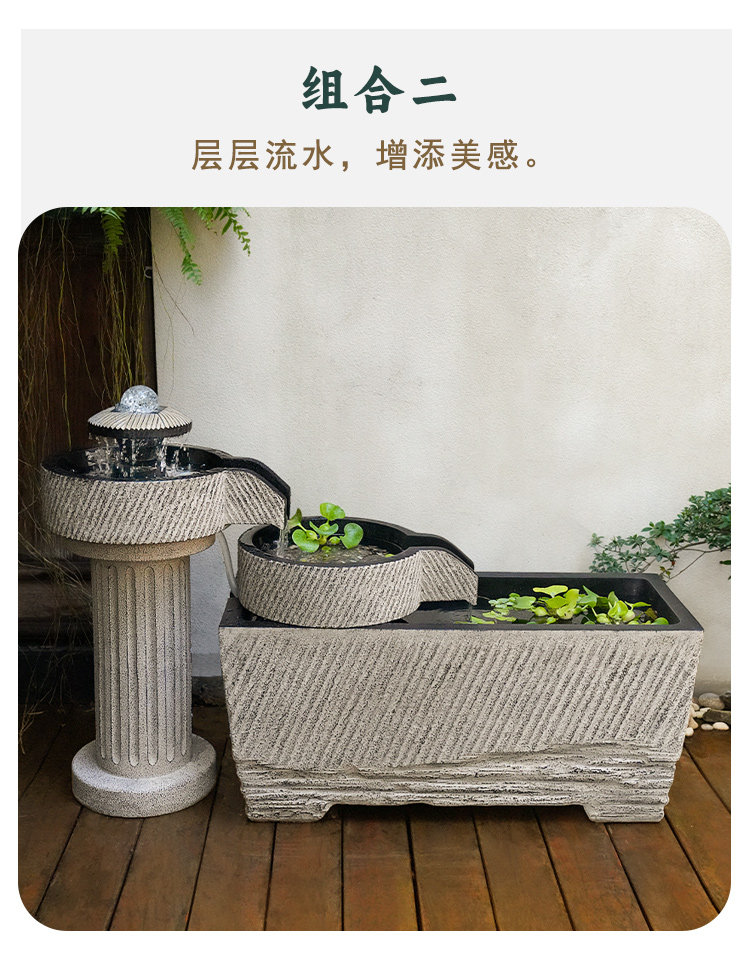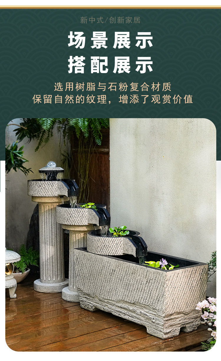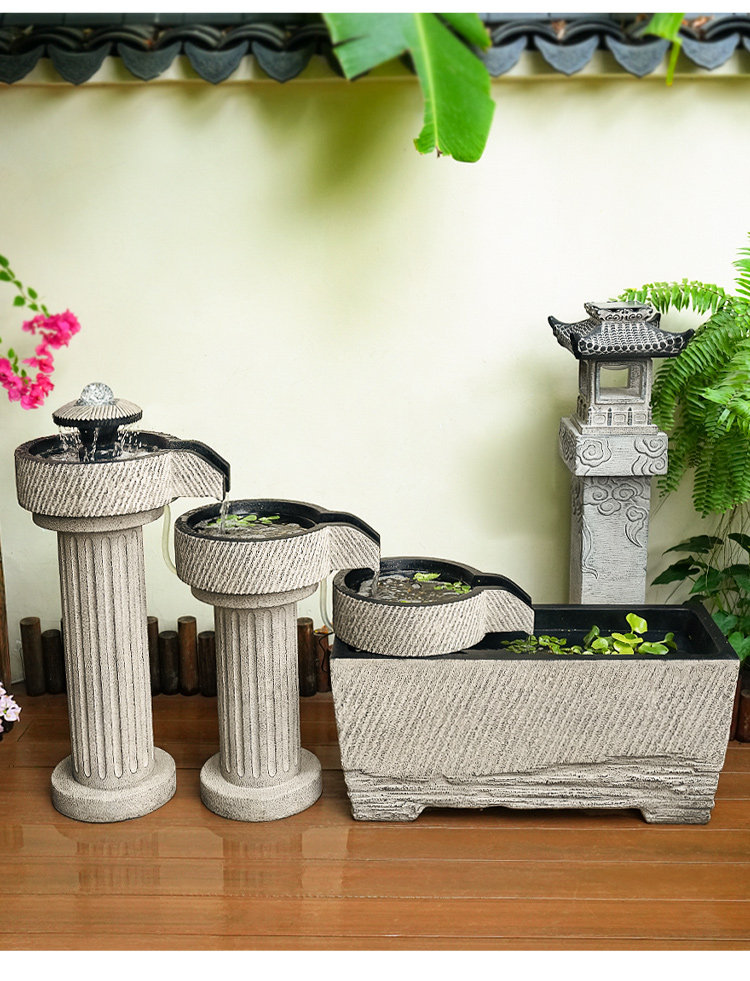 야외 안뜰 정원 중국식 흐르는 물 장식품 순환 물 마당 바닥에 있는 완성된 수조 발코니 1층 물고기 연못