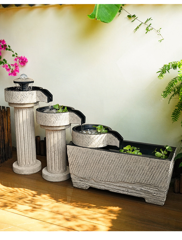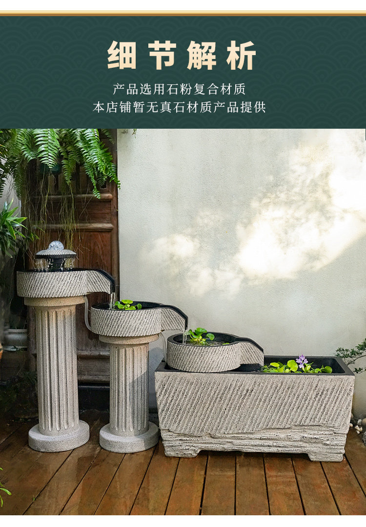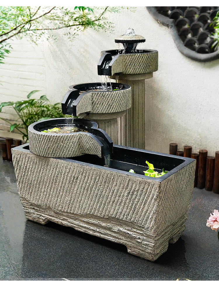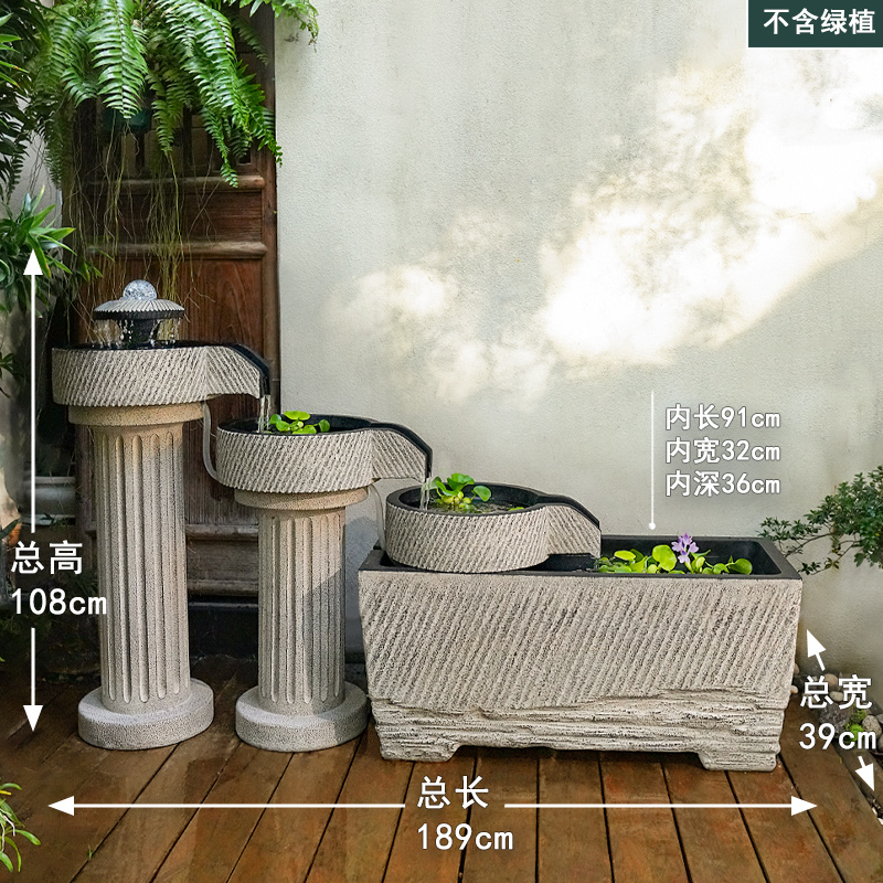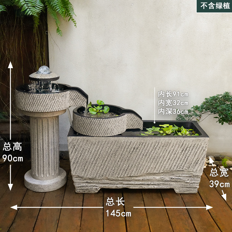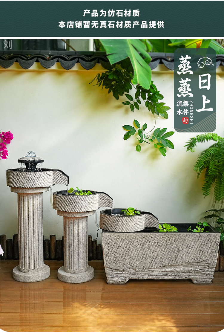 야외 안뜰 정원 중국식 흐르는 물 장식품 순환 물 마당 바닥에 있는 완성된 수조 발코니 1층 물고기 연못