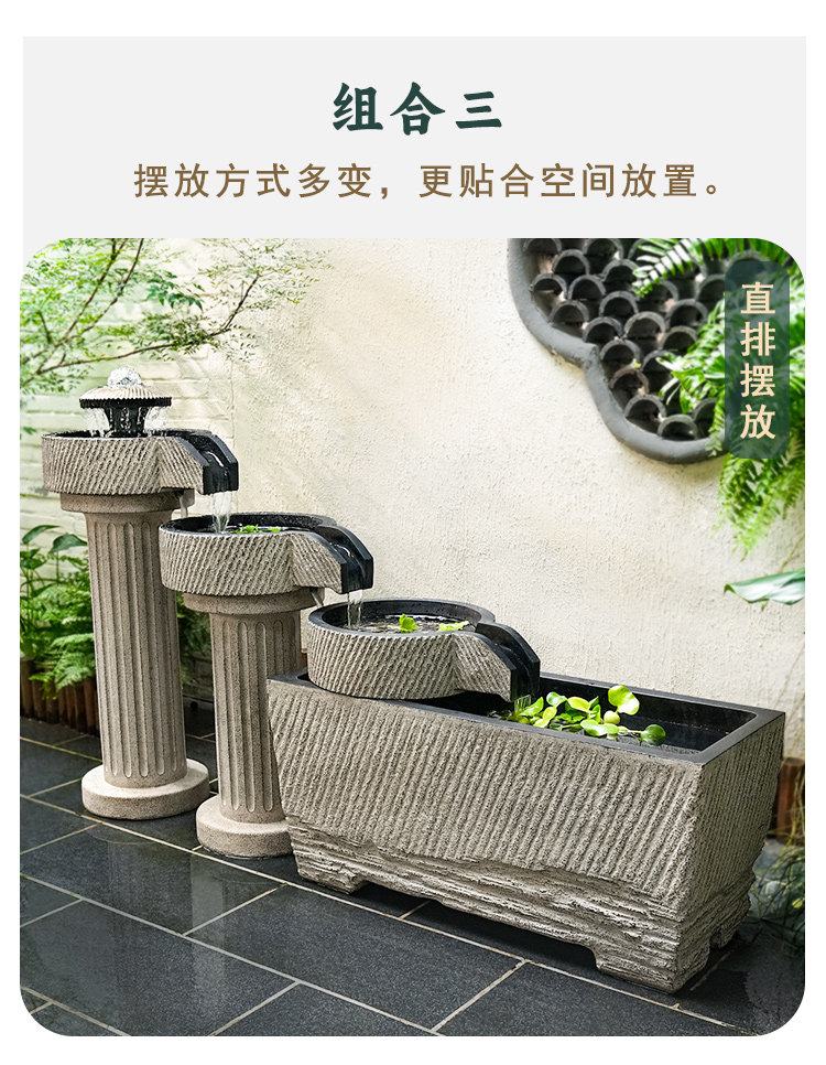 야외 안뜰 정원 중국식 흐르는 물 장식품 순환 물 마당 바닥에 있는 완성된 수조 발코니 1층 물고기 연못스토어 가기