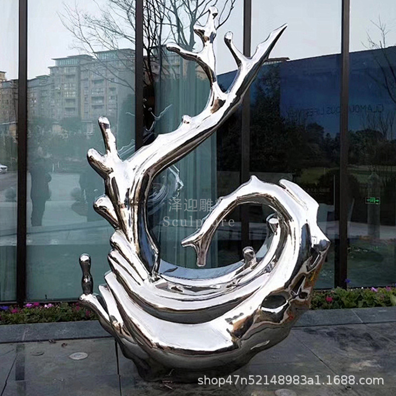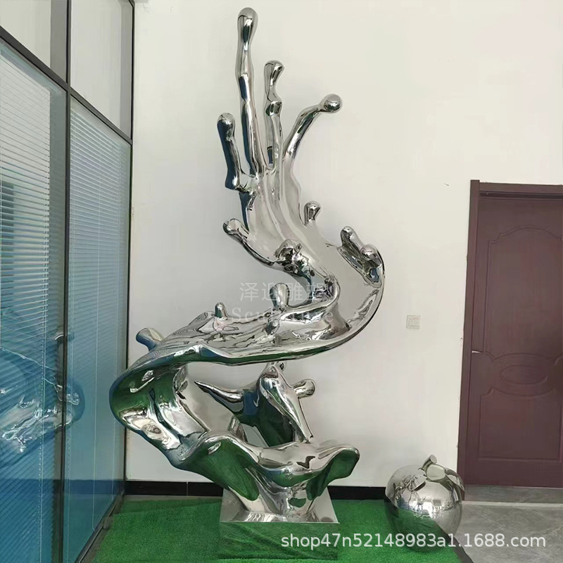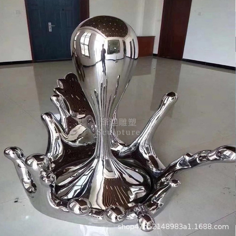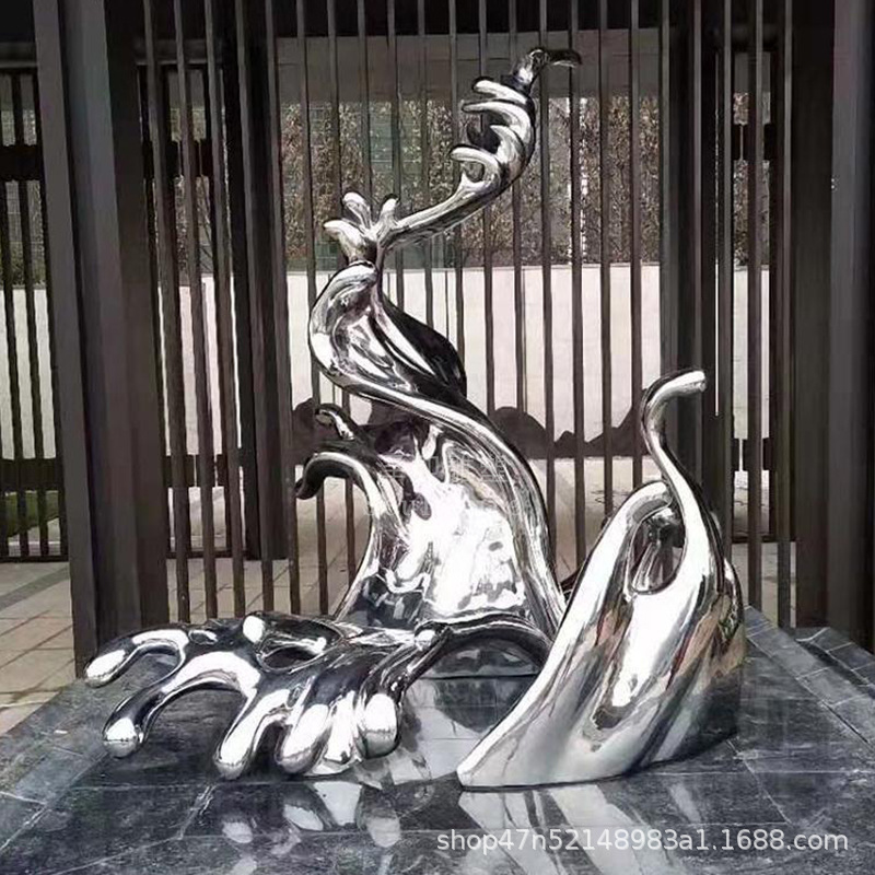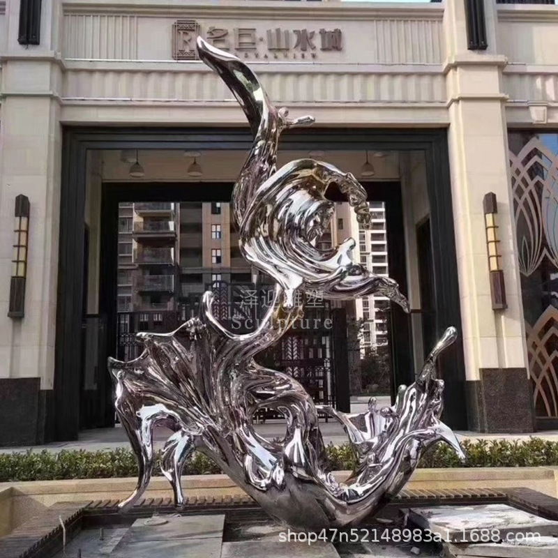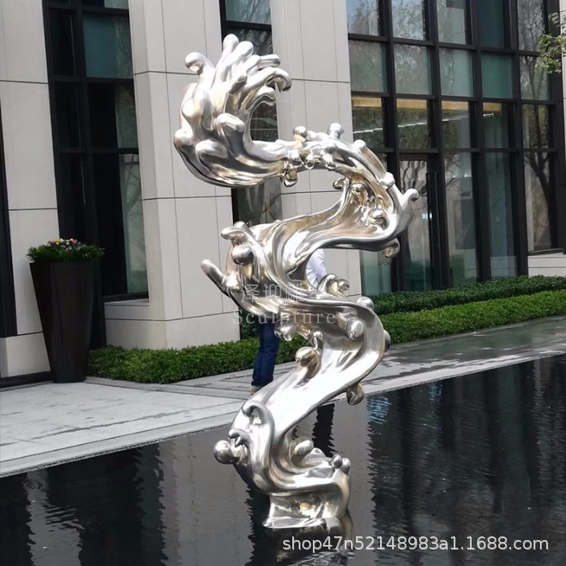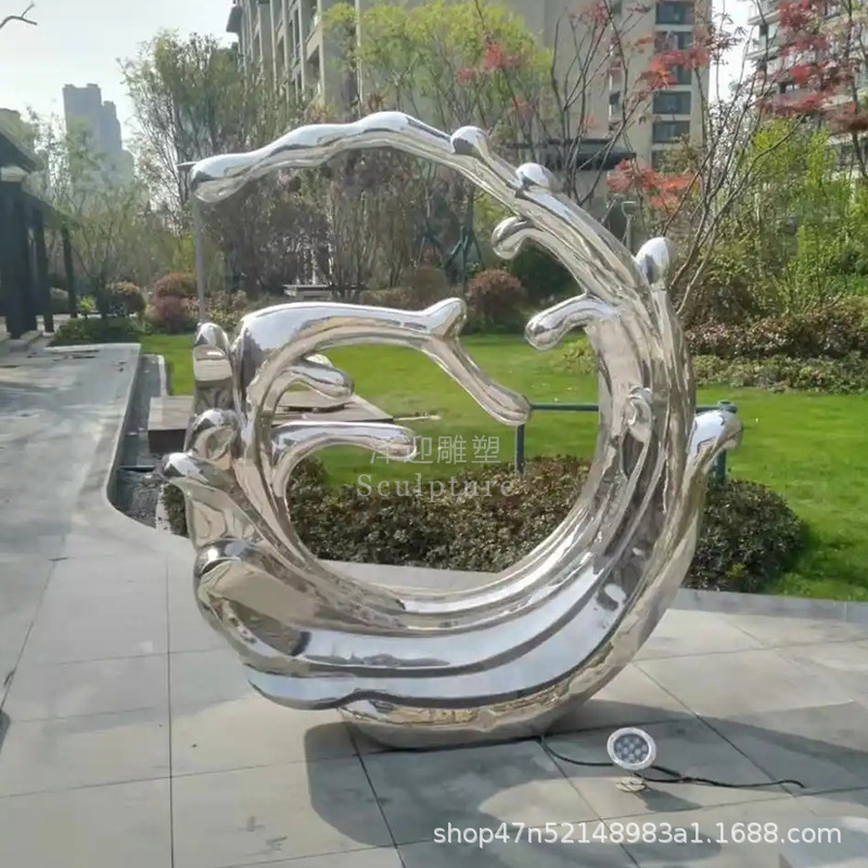 물결 조각품 스테인리스 대형 거울형 발광 야외 특수형 추상 물방울 물결 물경관 장식품스토어 가기