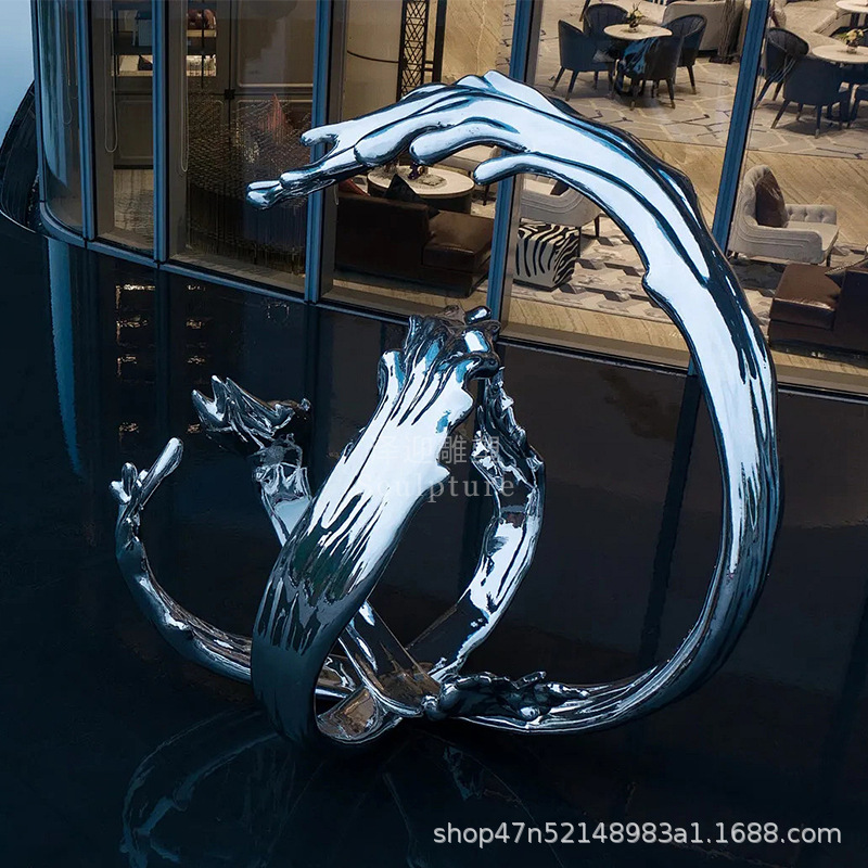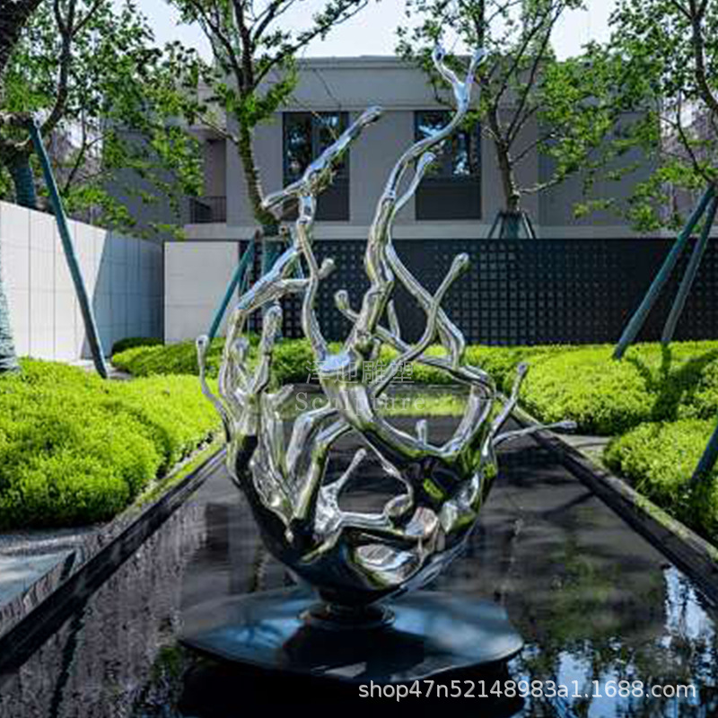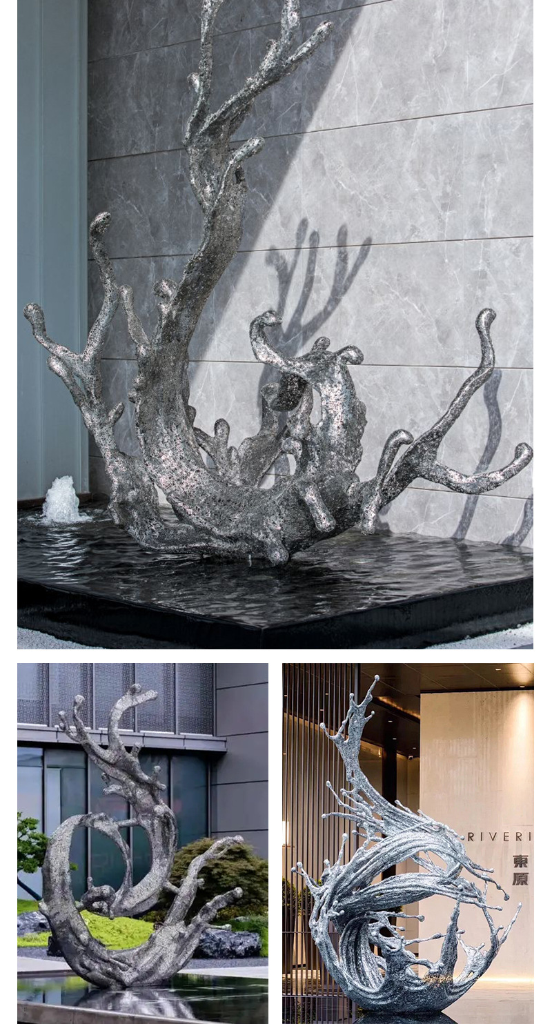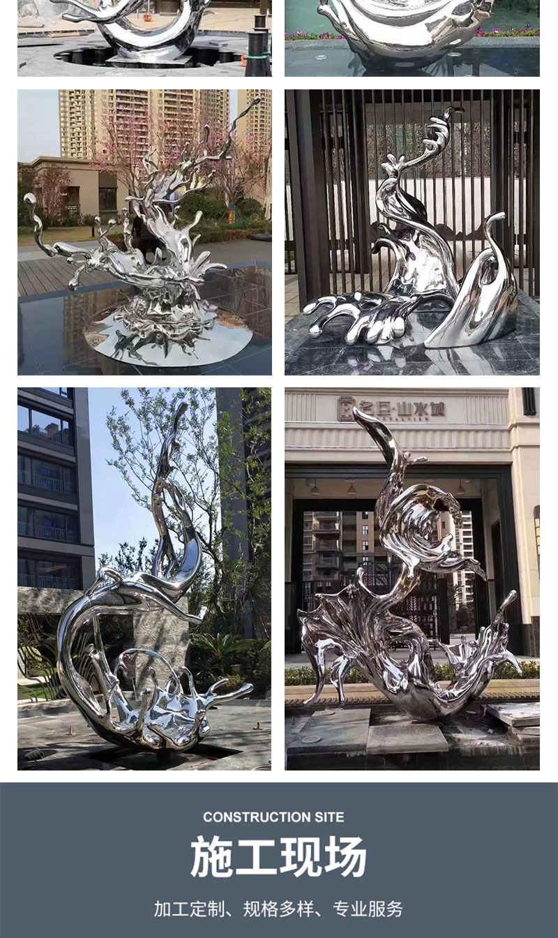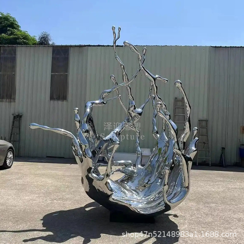 물결 조각품 스테인리스 대형 거울형 발광 야외 특수형 추상 물방울 물결 물경관 장식품스토어 가기