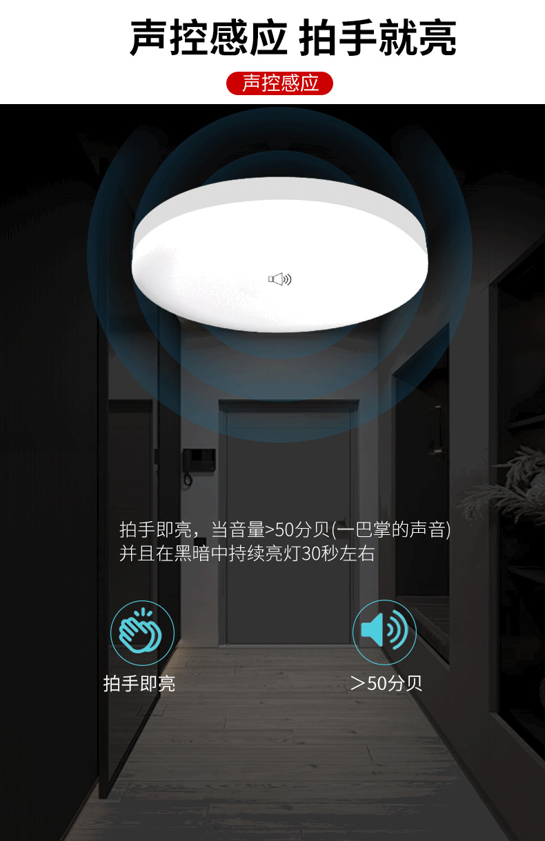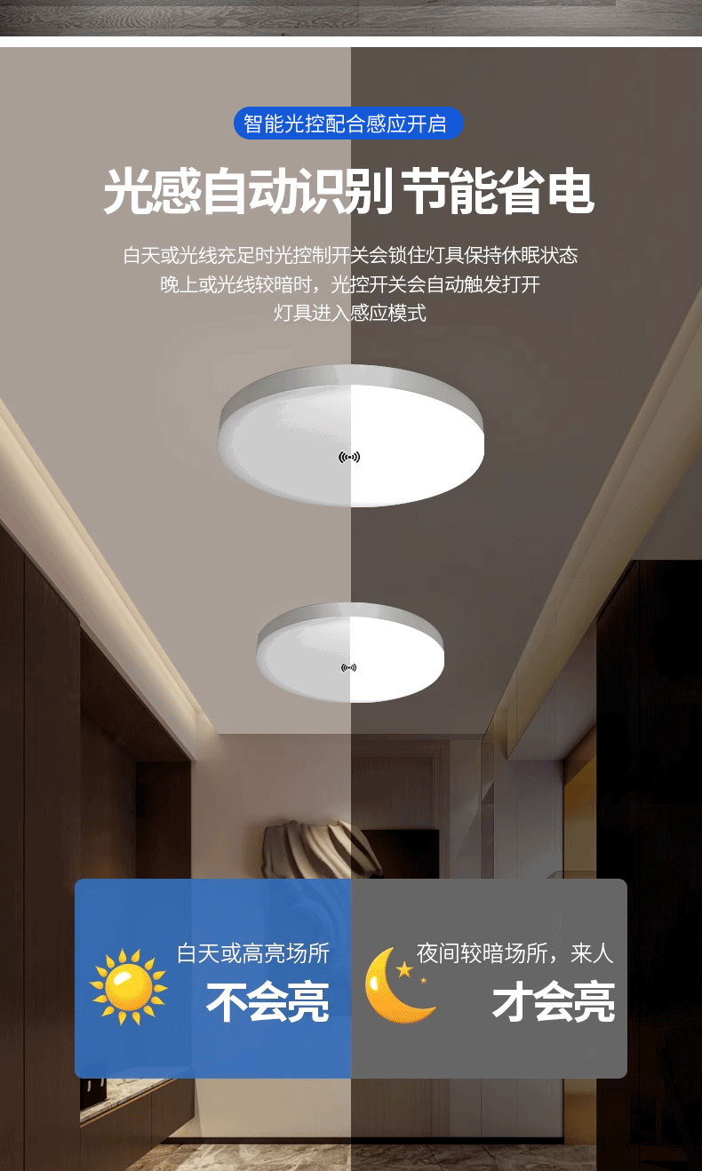 계단 통로에 사람이 있을 때 켜지는 마이크로파 레이더 유도 천장 조명, 음성 제어 지능형 LED 인체 유도 삼중 방지 조명스토어 가기