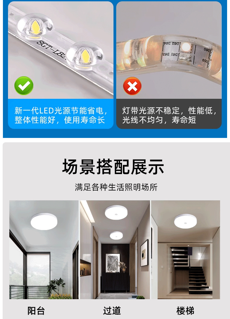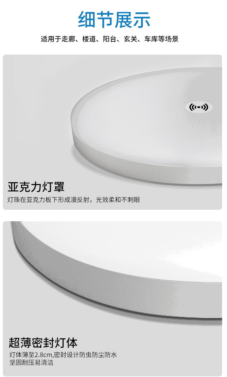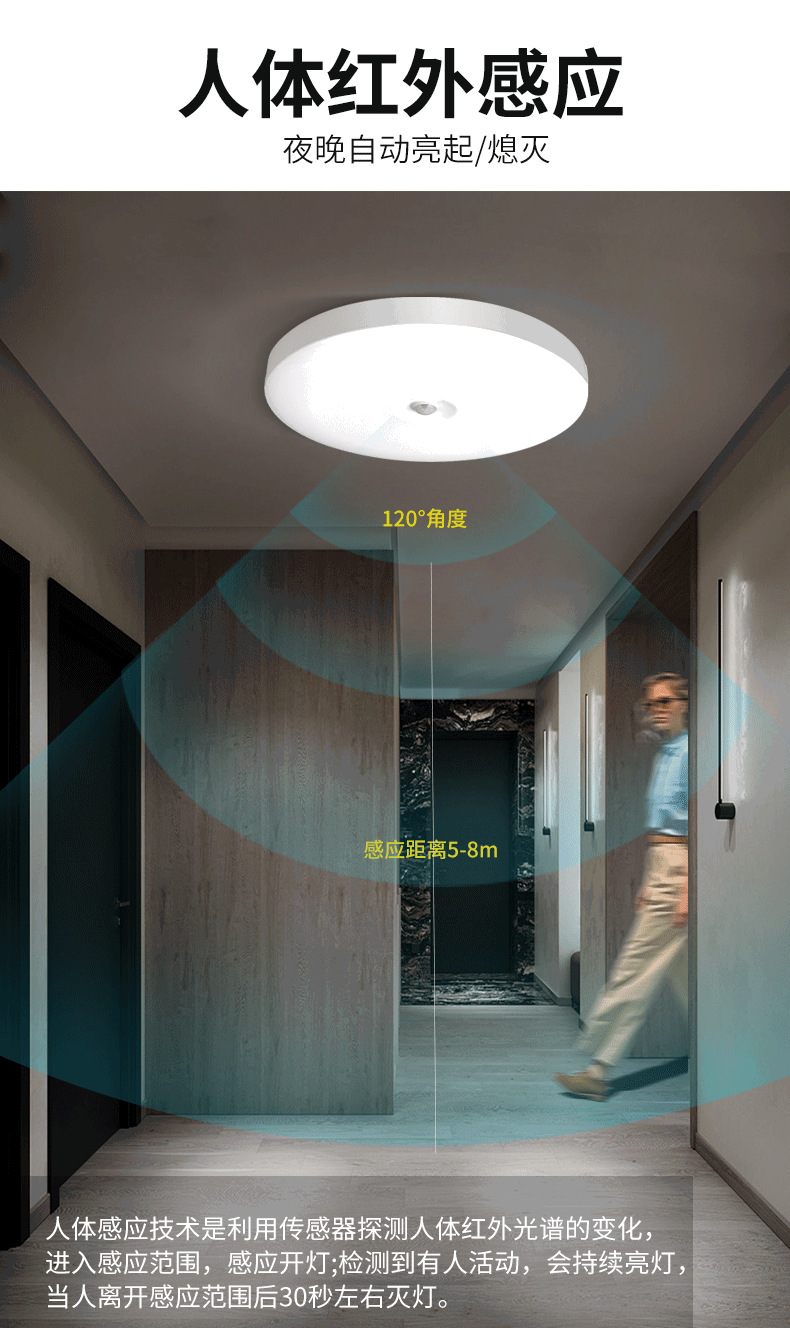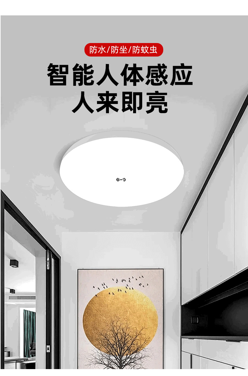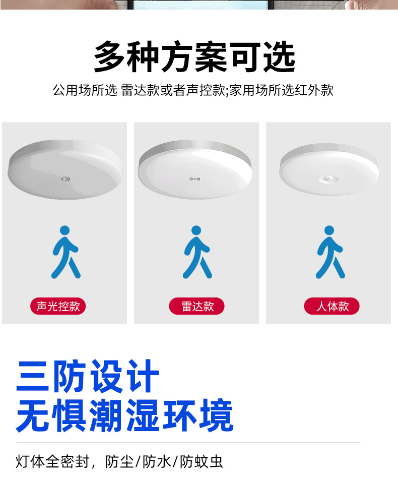 계단 통로에 사람이 있을 때 켜지는 마이크로파 레이더 유도 천장 조명, 음성 제어 지능형 LED 인체 유도 삼중 방지 조명