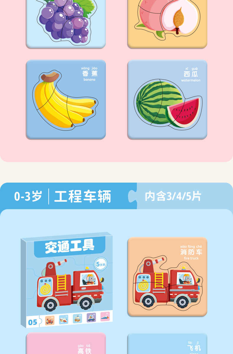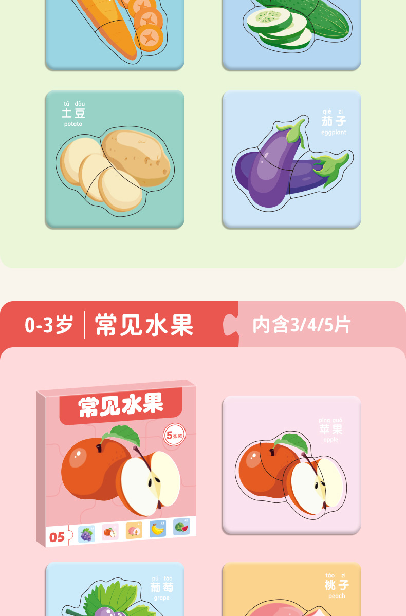 보급형 조기 교육 퍼즐 과일 동물 0-3세 어린이 교육 인지 카드 유치원 소년 소녀 장난감스토어 가기