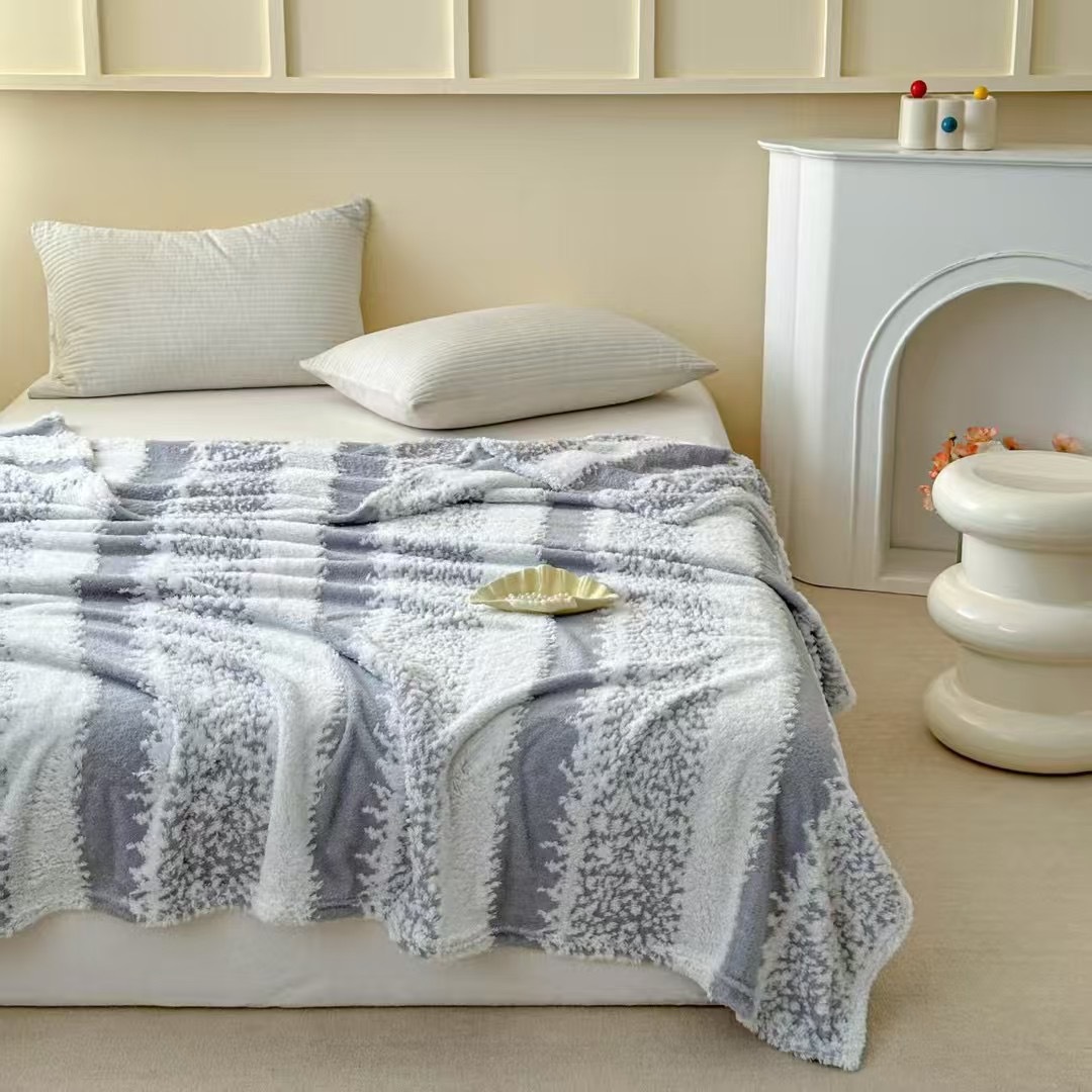새로운 양이온 자카드 양털 눈송이 줄무늬 담요 사계절 소파 담요 사무실 낮잠 담요 따뜻한 피부 친화적 인 양털 담요스토어 가기