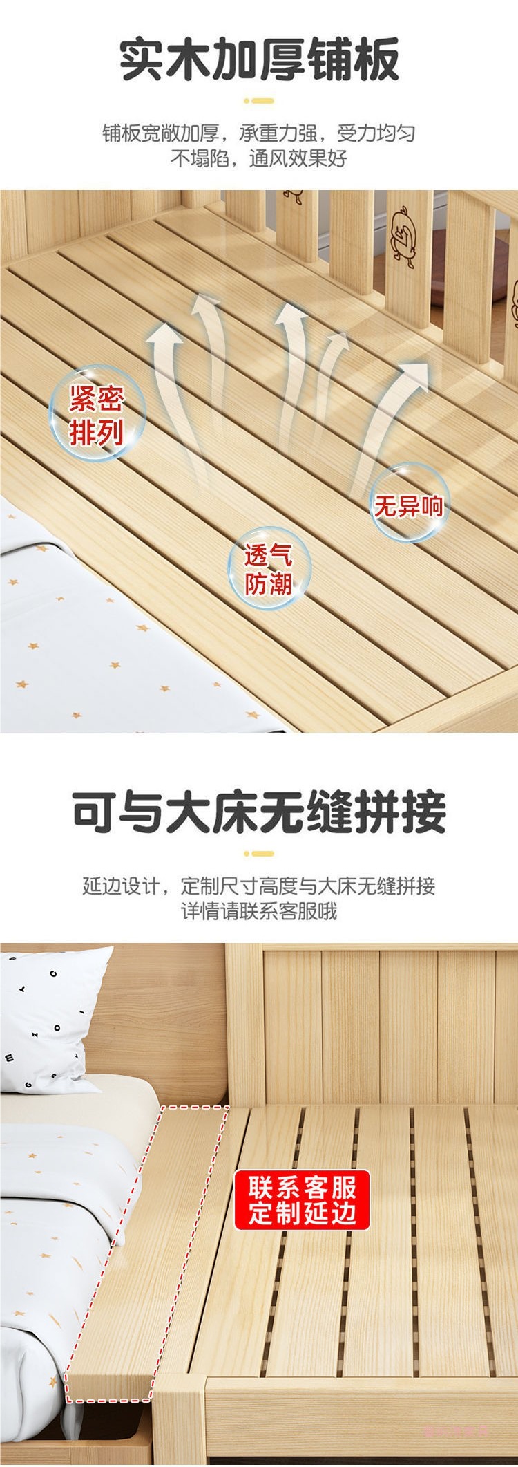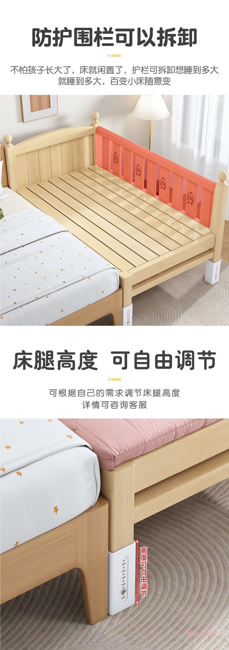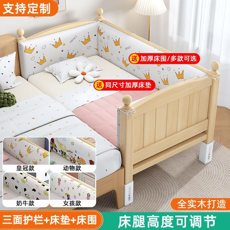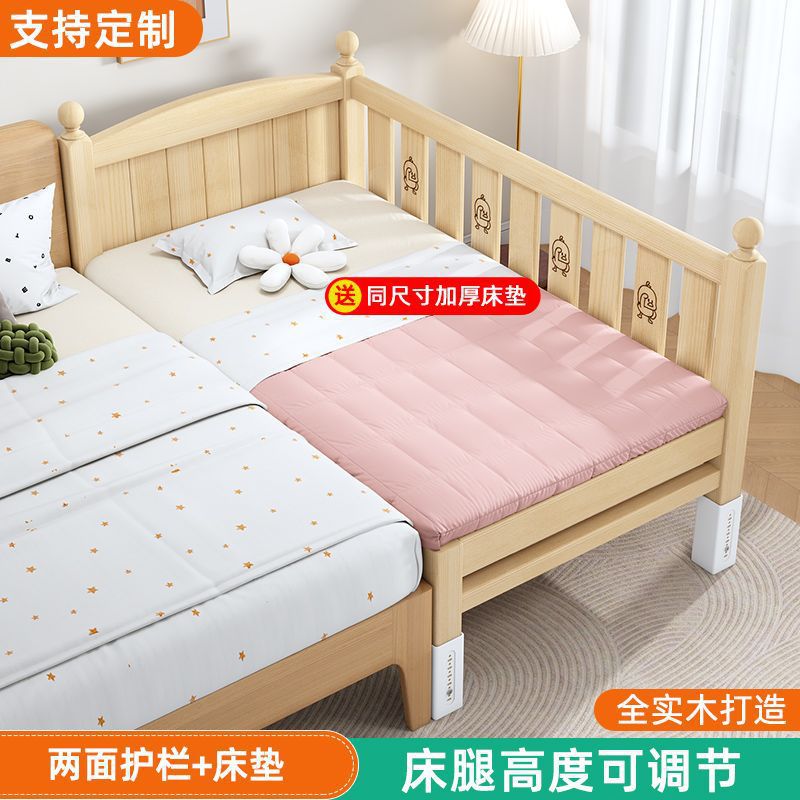 단단한 나무 접합 침대 넓은 큰 침대 옆 작은 침대 아기 소년과 소녀 어린이 침대 조절 가능한 유아용 침대