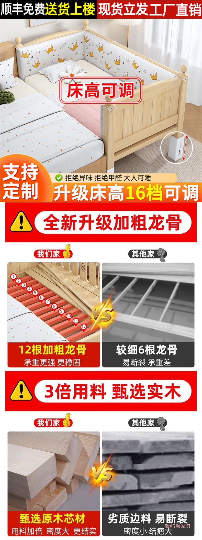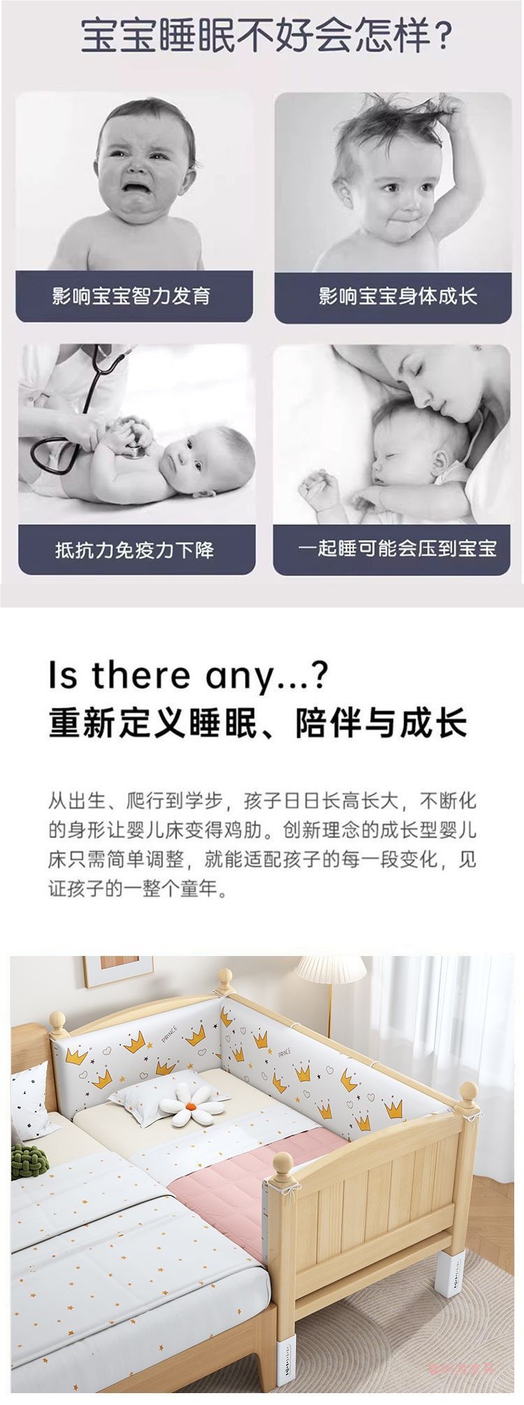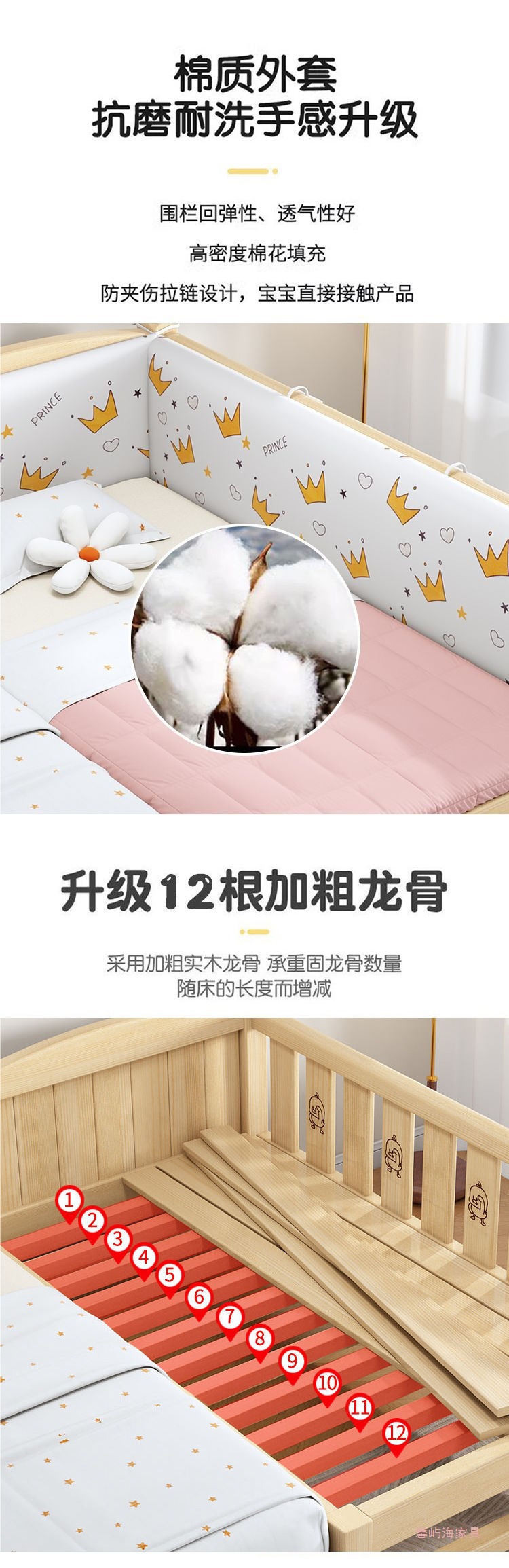 단단한 나무 접합 침대 넓은 큰 침대 옆 작은 침대 아기 소년과 소녀 어린이 침대 조절 가능한 유아용 침대