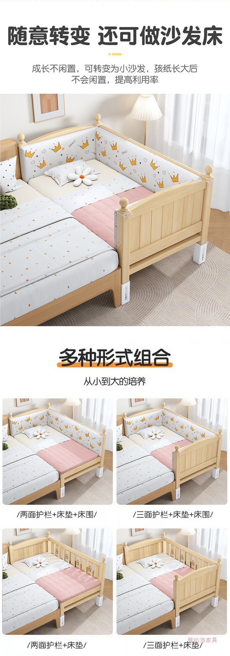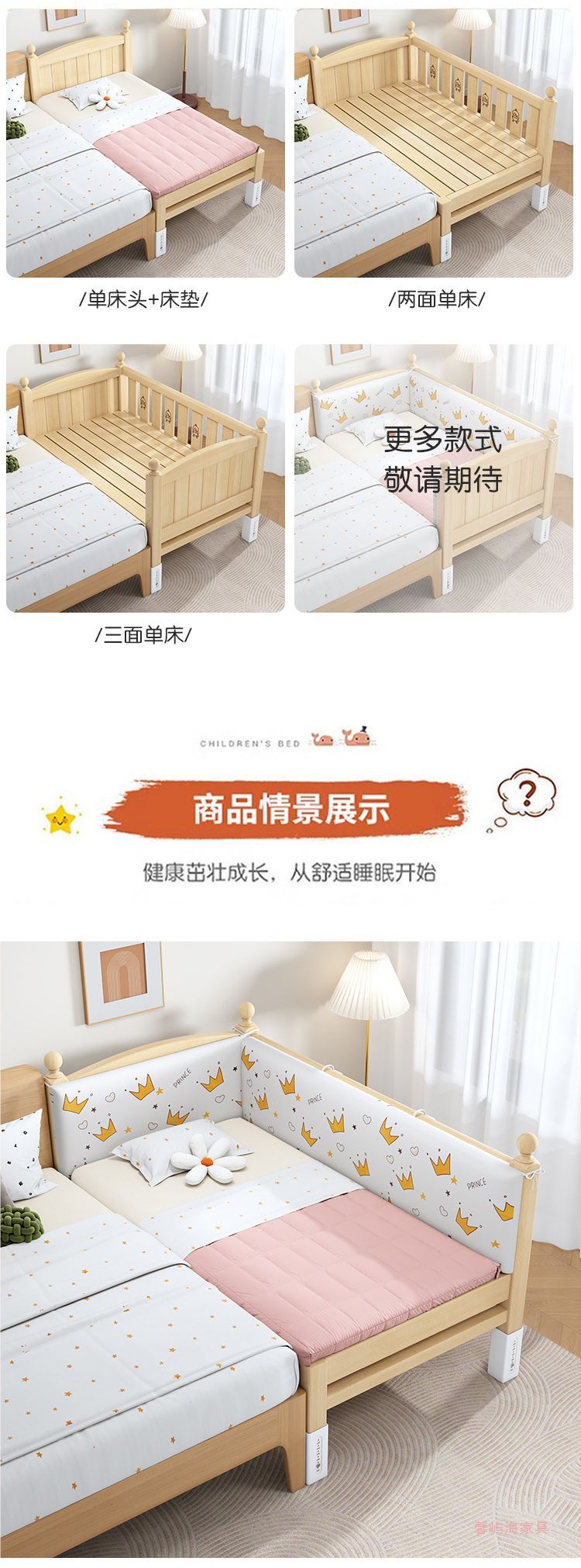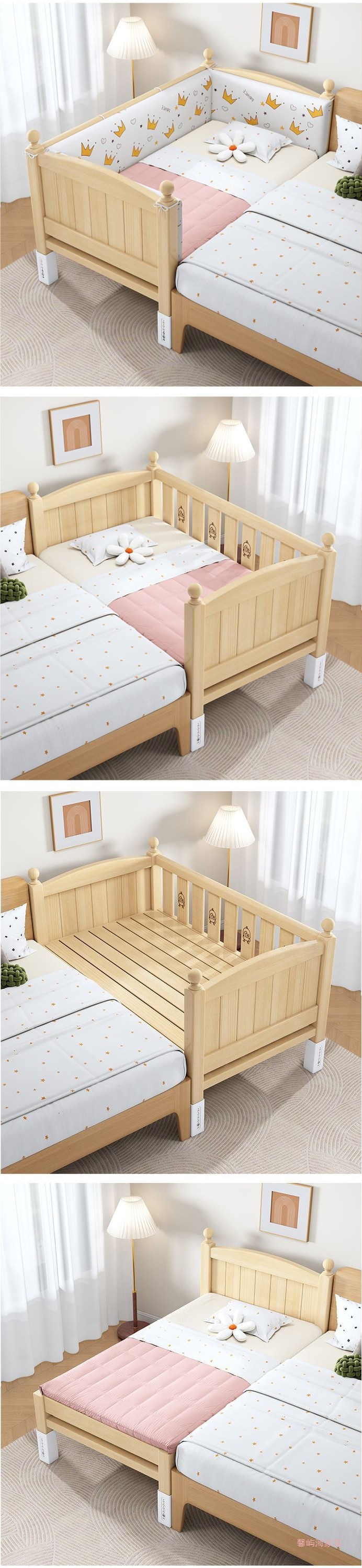 단단한 나무 접합 침대 넓은 큰 침대 옆 작은 침대 아기 소년과 소녀 어린이 침대 조절 가능한 유아용 침대스토어 가기
