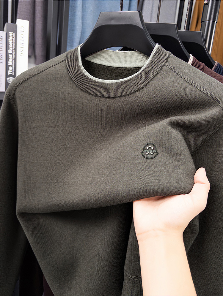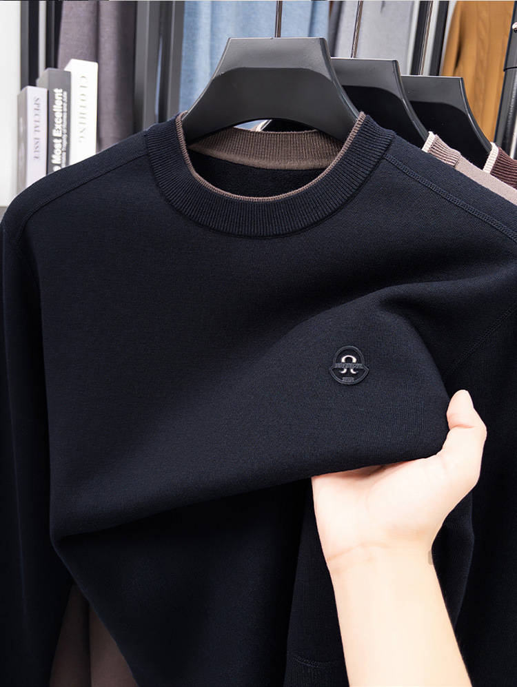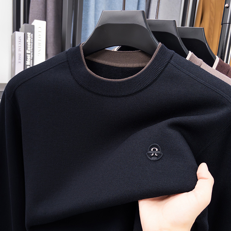 겨울 남성용 라운드넥 기모 두꺼운 니트 스웨터, 스태킹 칼라 디자인, 캐주얼 패션 스웨터 상의, 풀오버 남성용