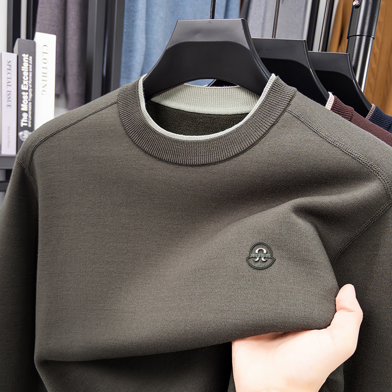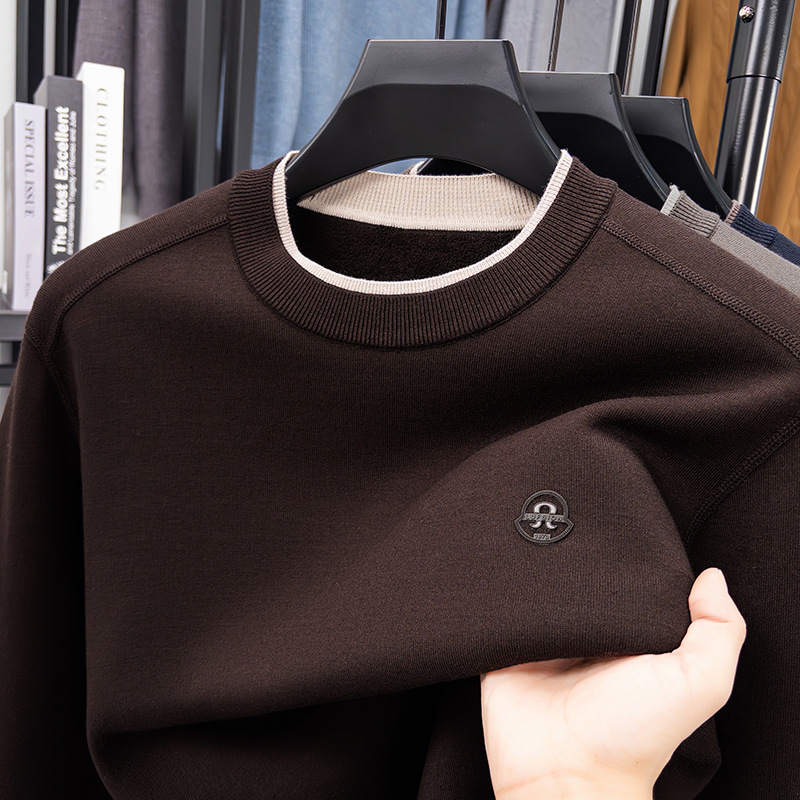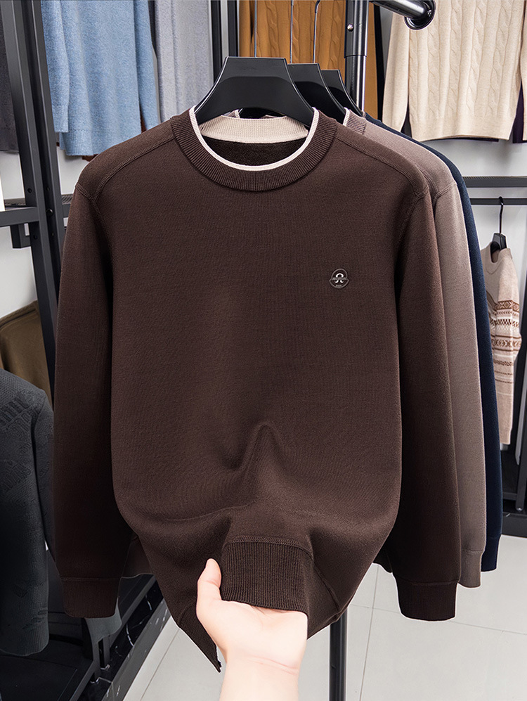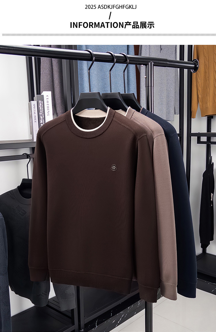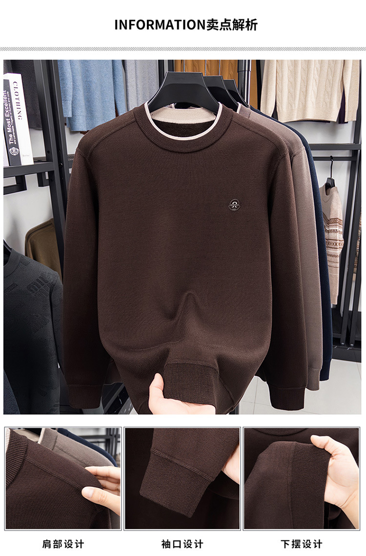 겨울 남성용 라운드넥 기모 두꺼운 니트 스웨터, 스태킹 칼라 디자인, 캐주얼 패션 스웨터 상의, 풀오버 남성용스토어 가기