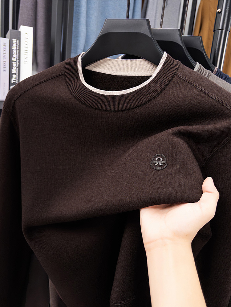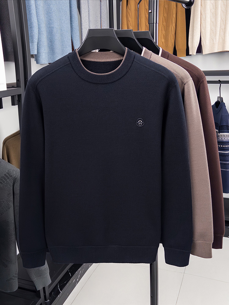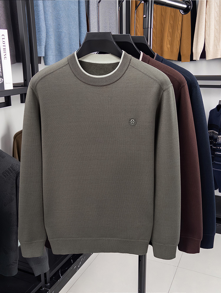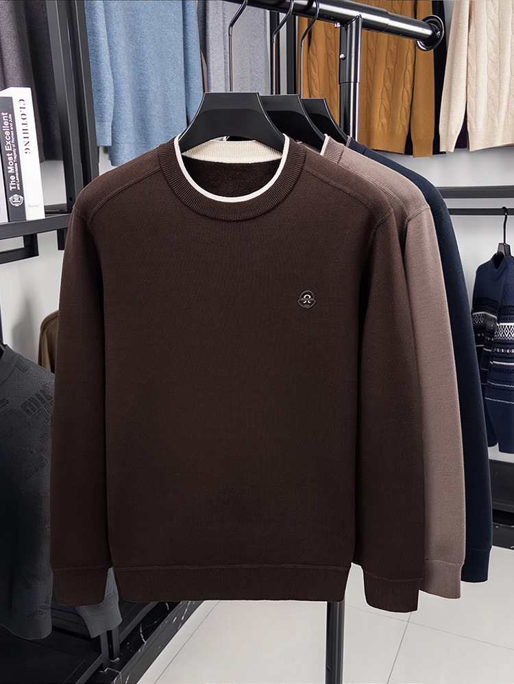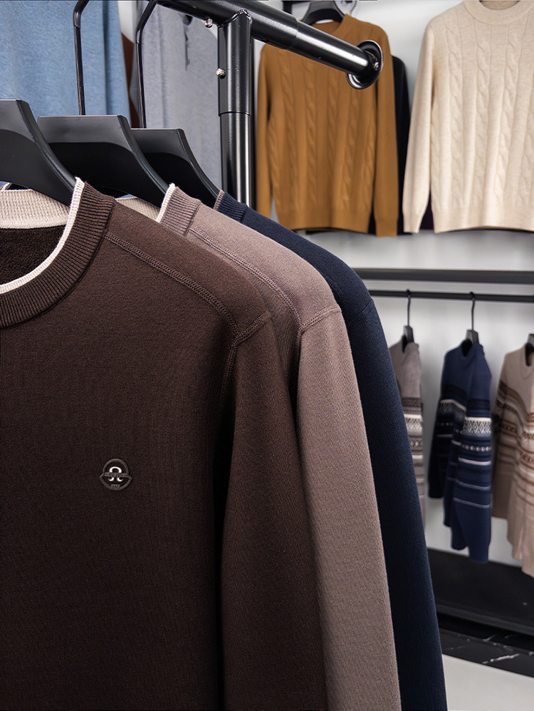 겨울 남성용 라운드넥 기모 두꺼운 니트 스웨터, 스태킹 칼라 디자인, 캐주얼 패션 스웨터 상의, 풀오버 남성용스토어 가기