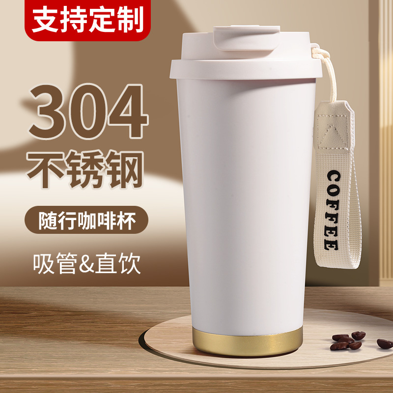 커피 보온병 컵 304 스테인레스 스틸 보온병 컵 릴리 밸리 더블 마시는 빨대 스테인레스 스틸 커피 컵 맞춤형 로고