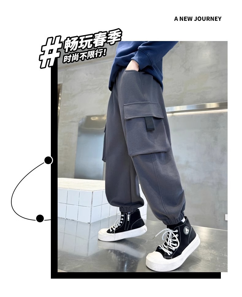 소년 바지 봄, 가을 2025 새로운 어린이 작업복 캐주얼 바지 중대형 어린이 봄 의류 소년 스포츠 긴 바지