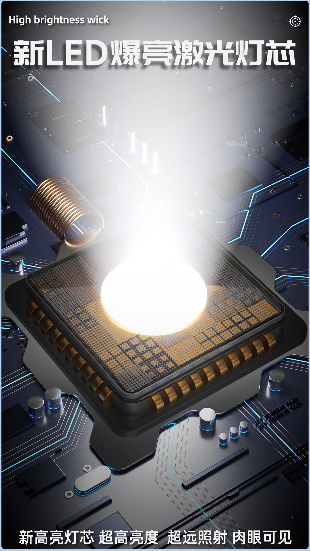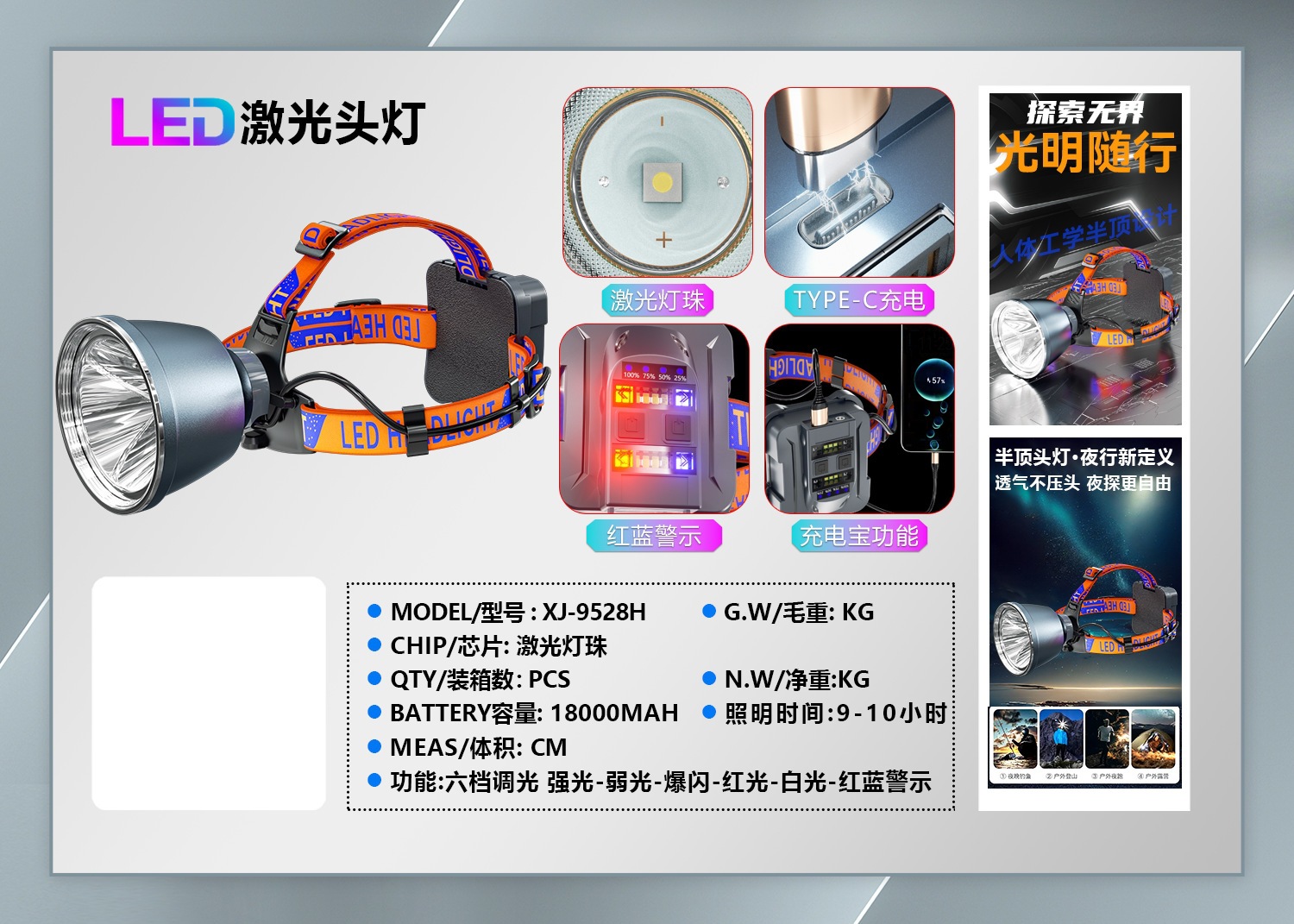 • XJ-9528H 밝기가 감소하지 않음, 21700 리튬 배터리 4개, 18000mAh, 9시간 동안 정전류 방전