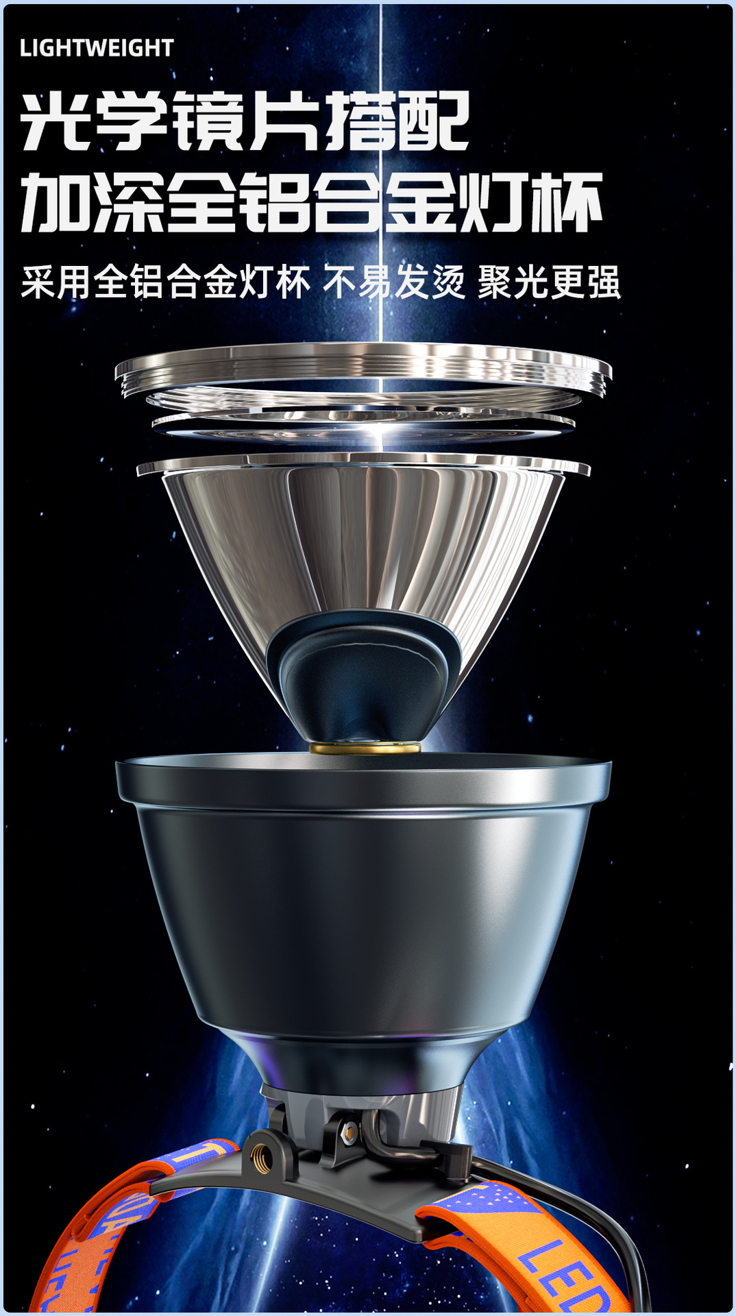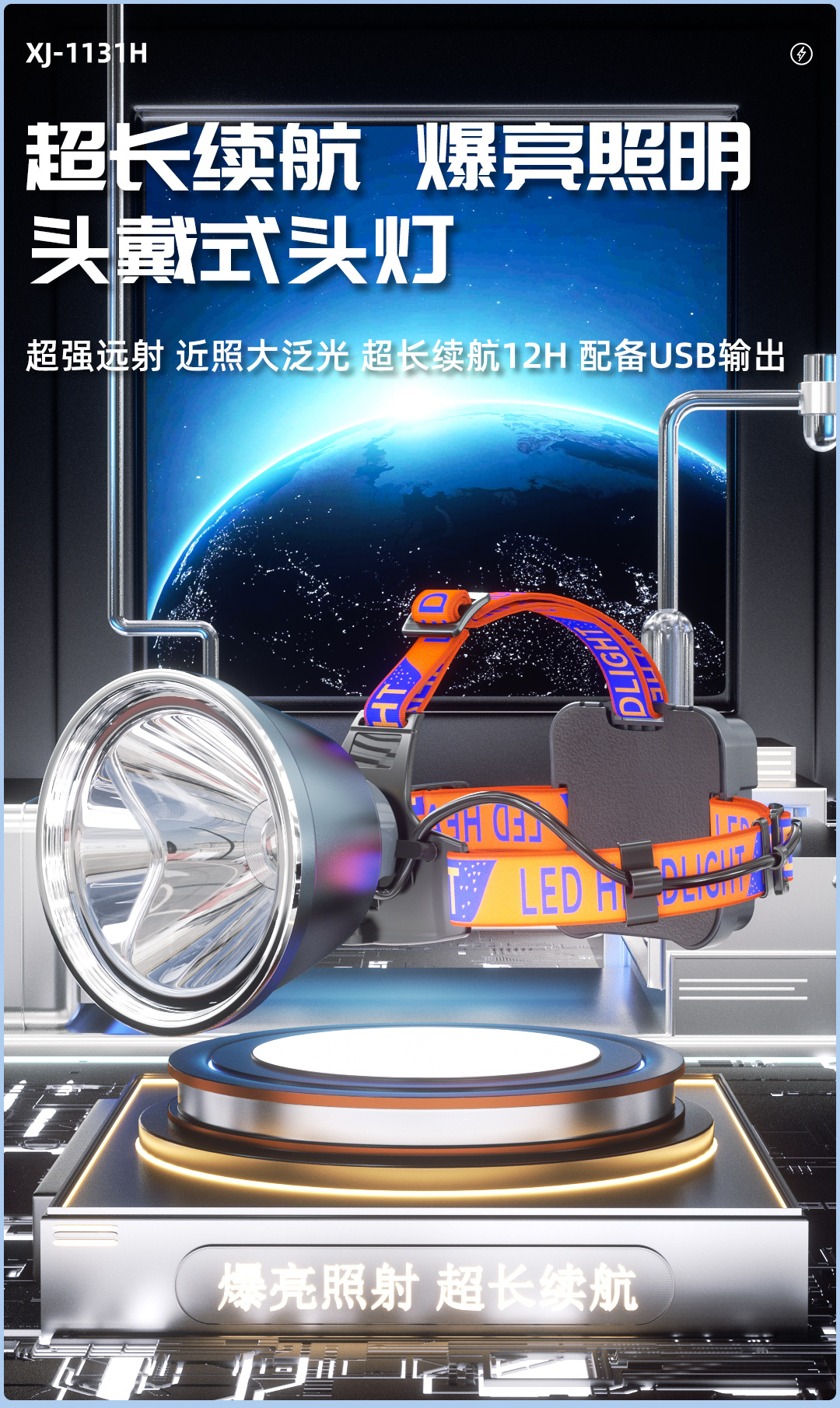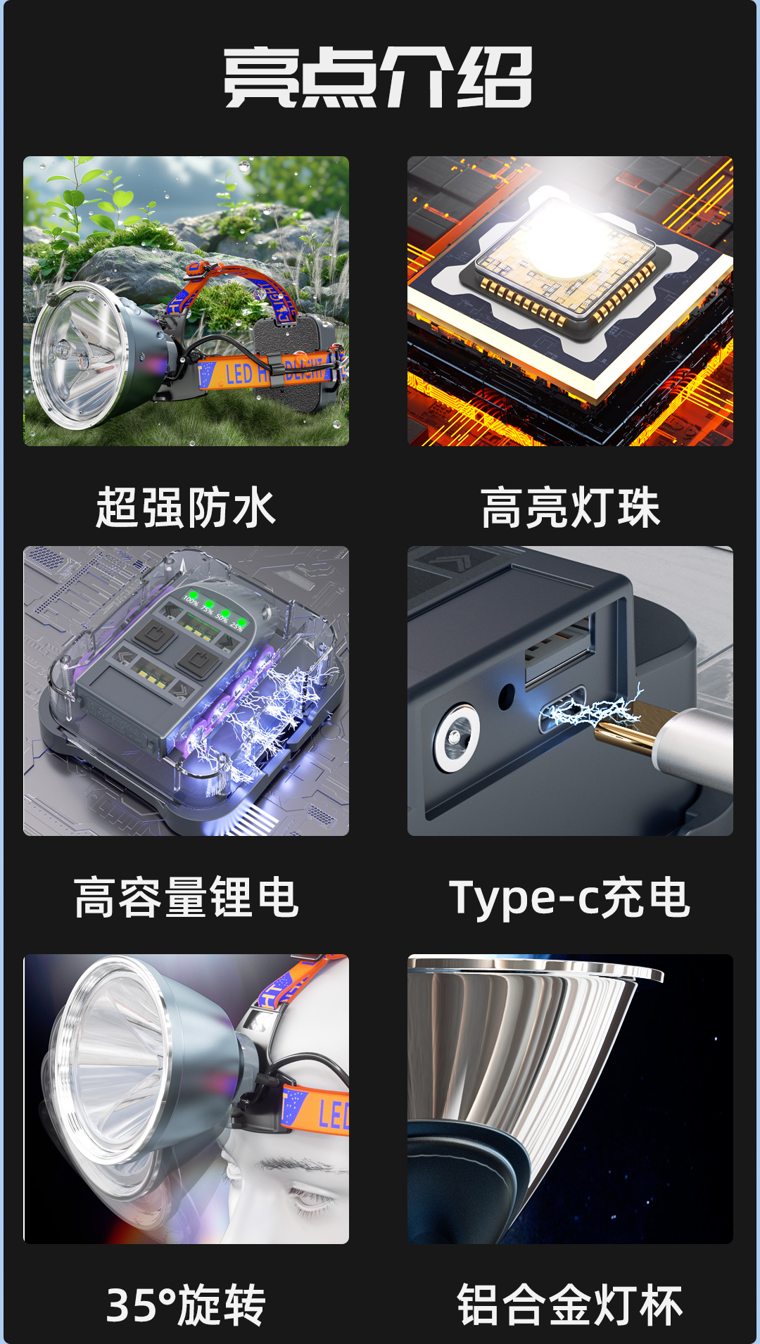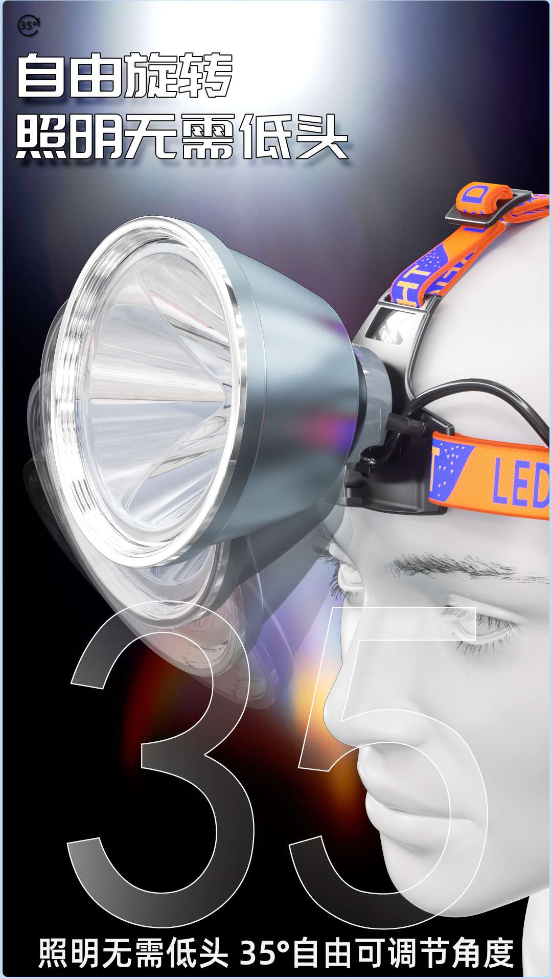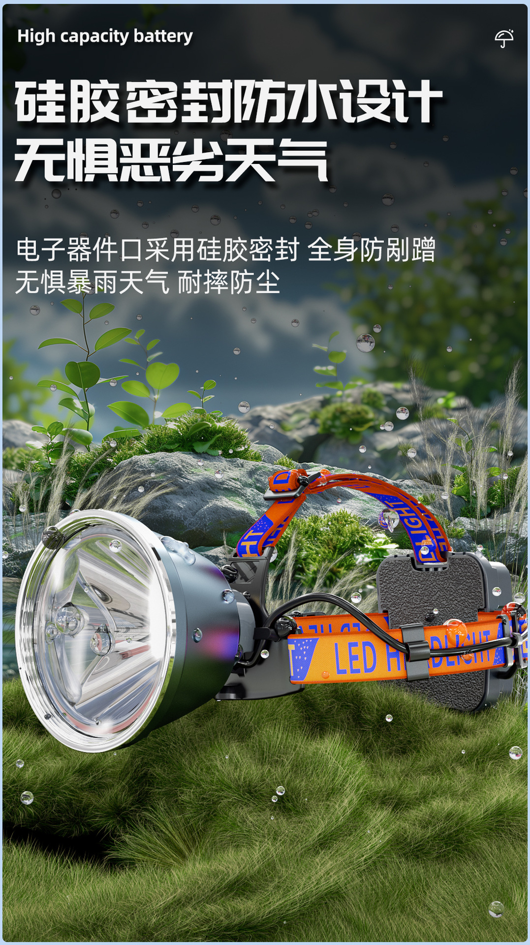 새로운 야외 고출력 led 헤드 램프 긴 배터리 수명 리튬 배터리 낚시 램프 필드 강한 빛 높은 루멘 조명 램프
