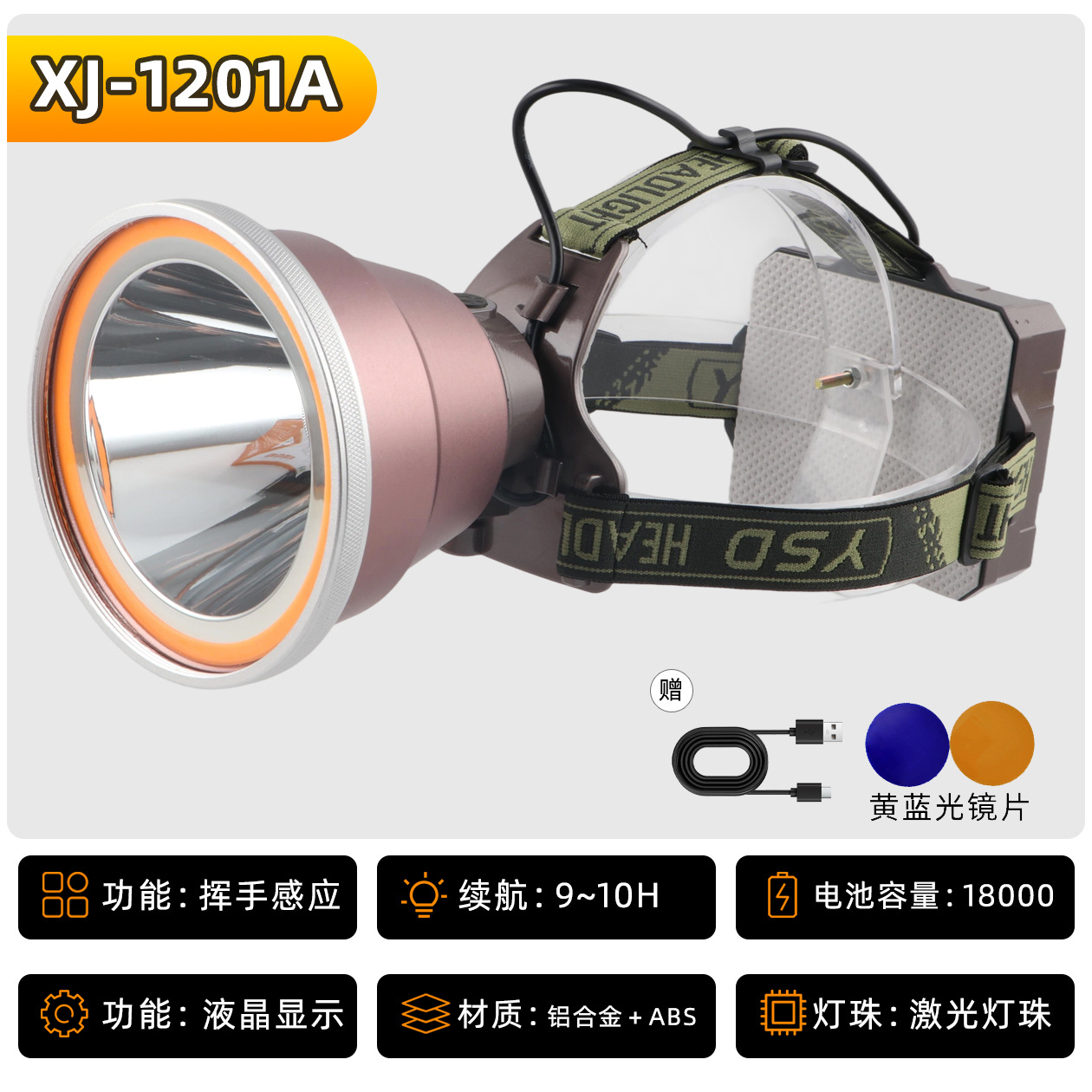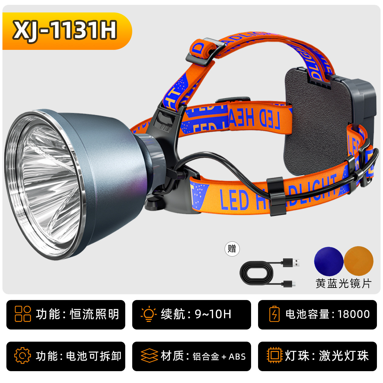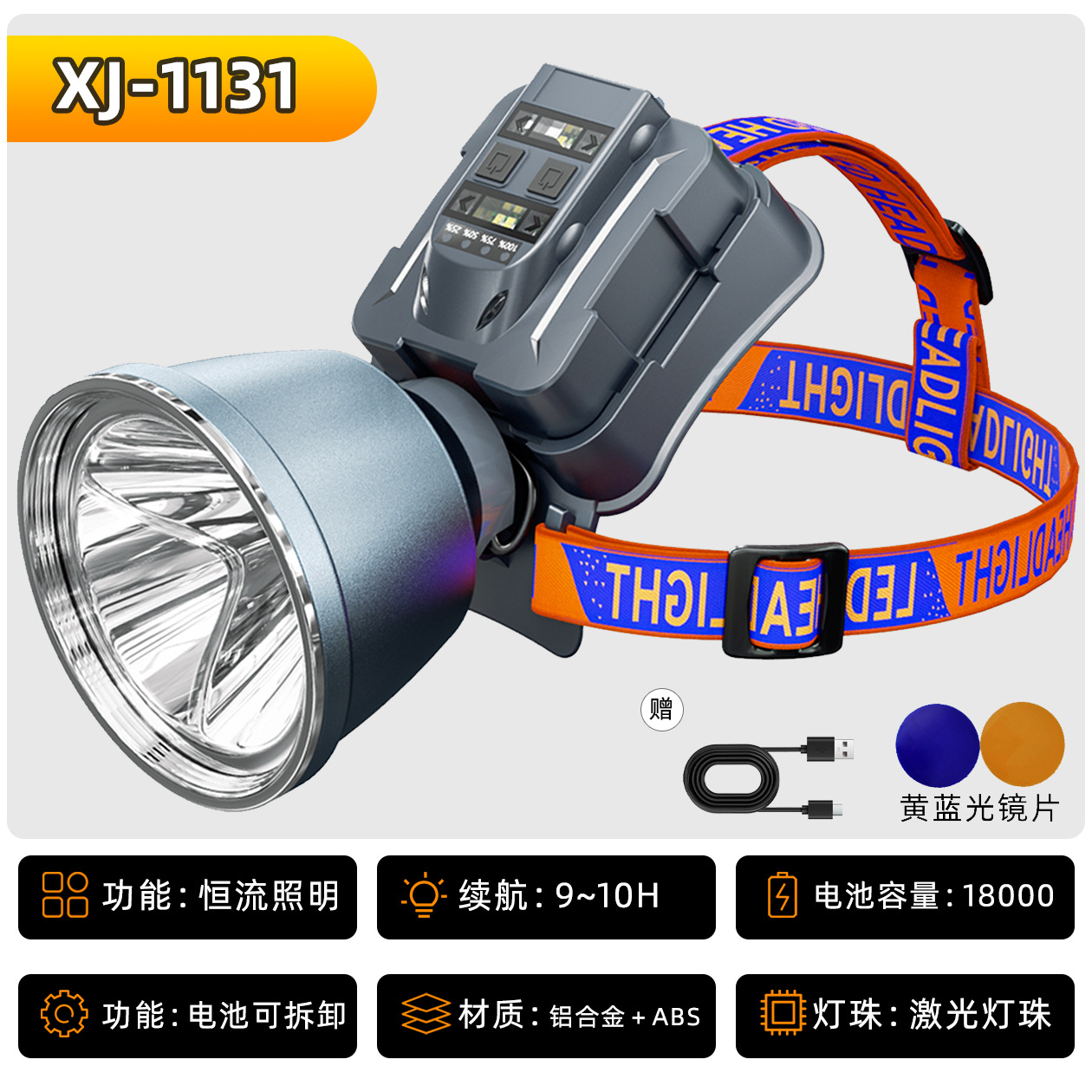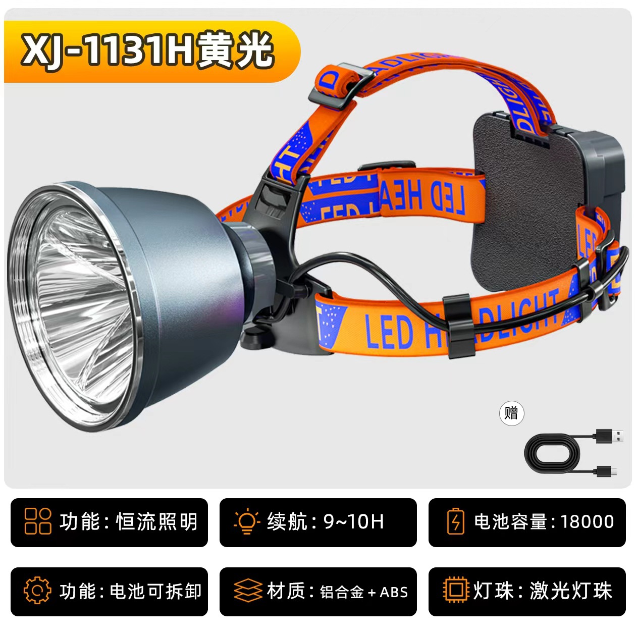 • XJ-1131H 황색광 밝기가 감소하지 않음, 21700 리튬 배터리 4개, 18000mAh, 9시간 동안 정전류 방전