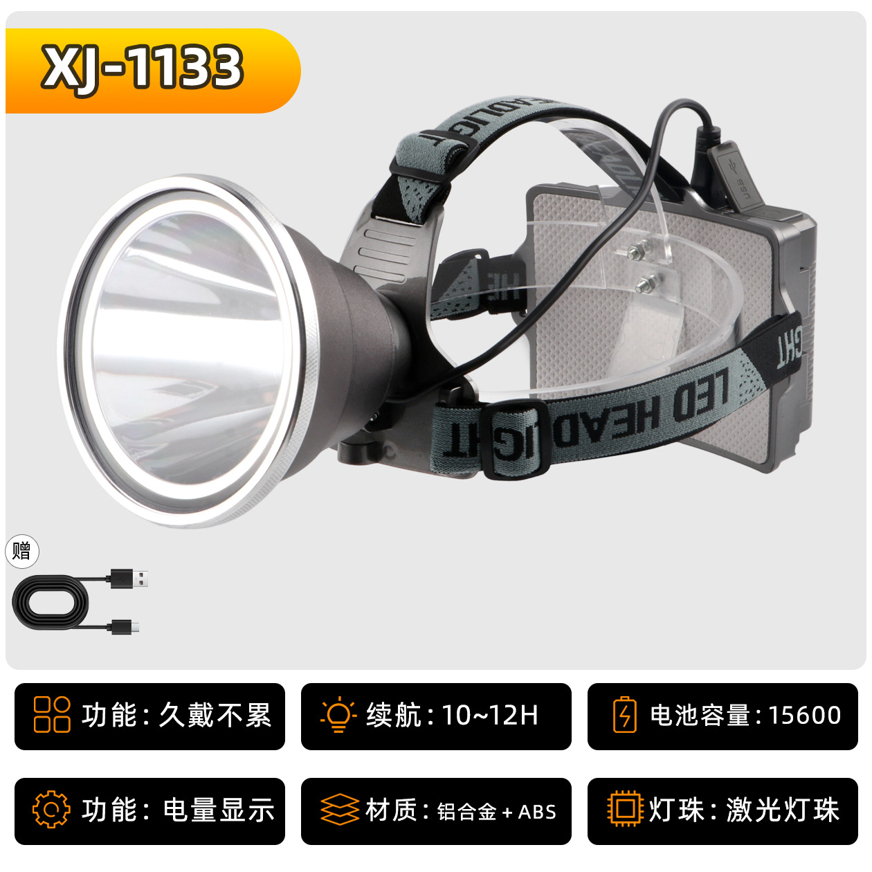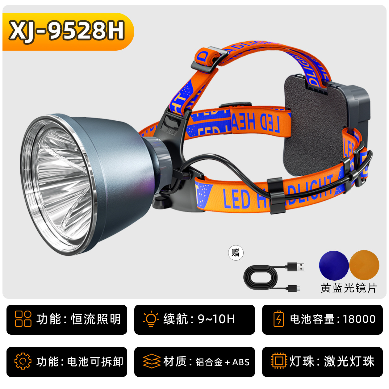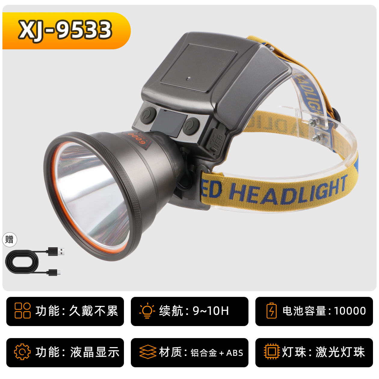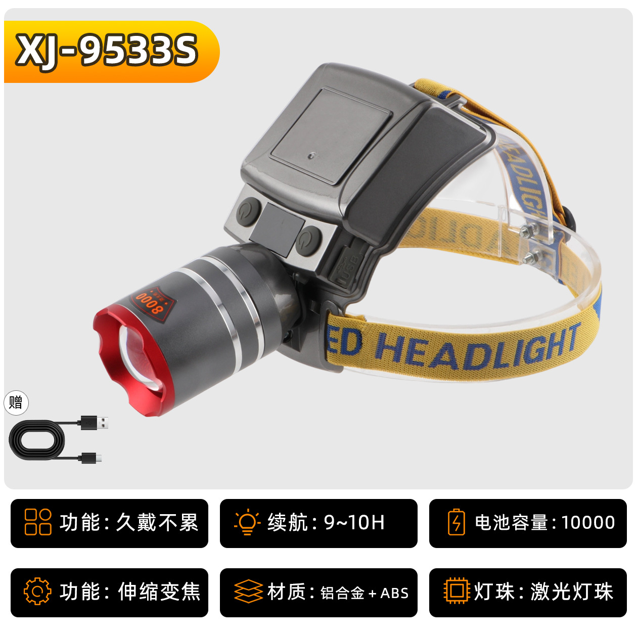 • XJ-9533S 헤드 조절식 줌 기능 4단 18650 리튬 배터리 10000mAh, 강력한 빛으로 9시간 사용 가능