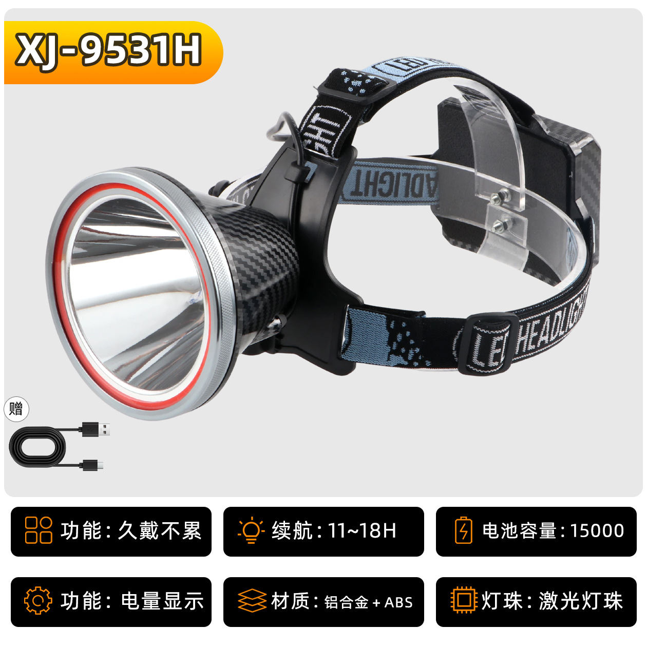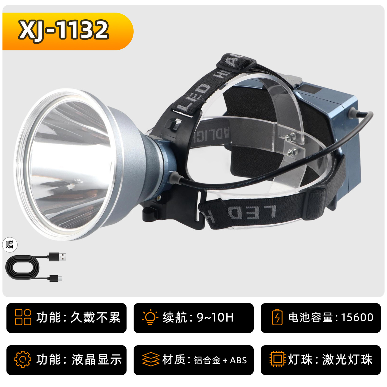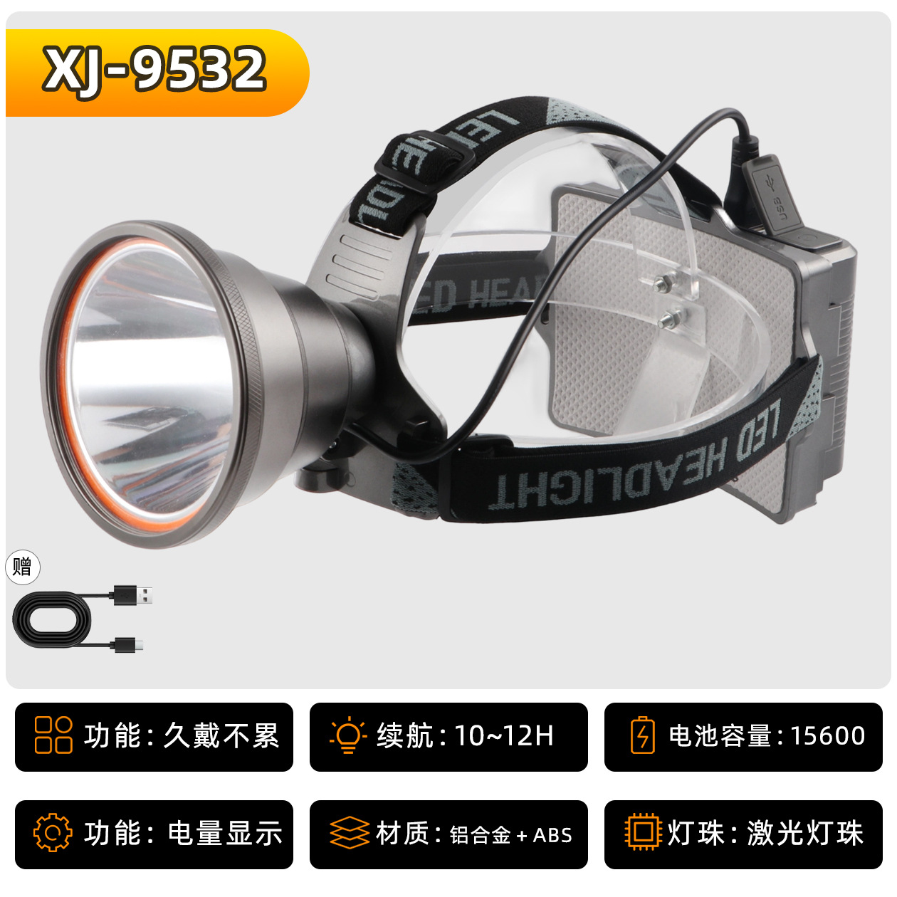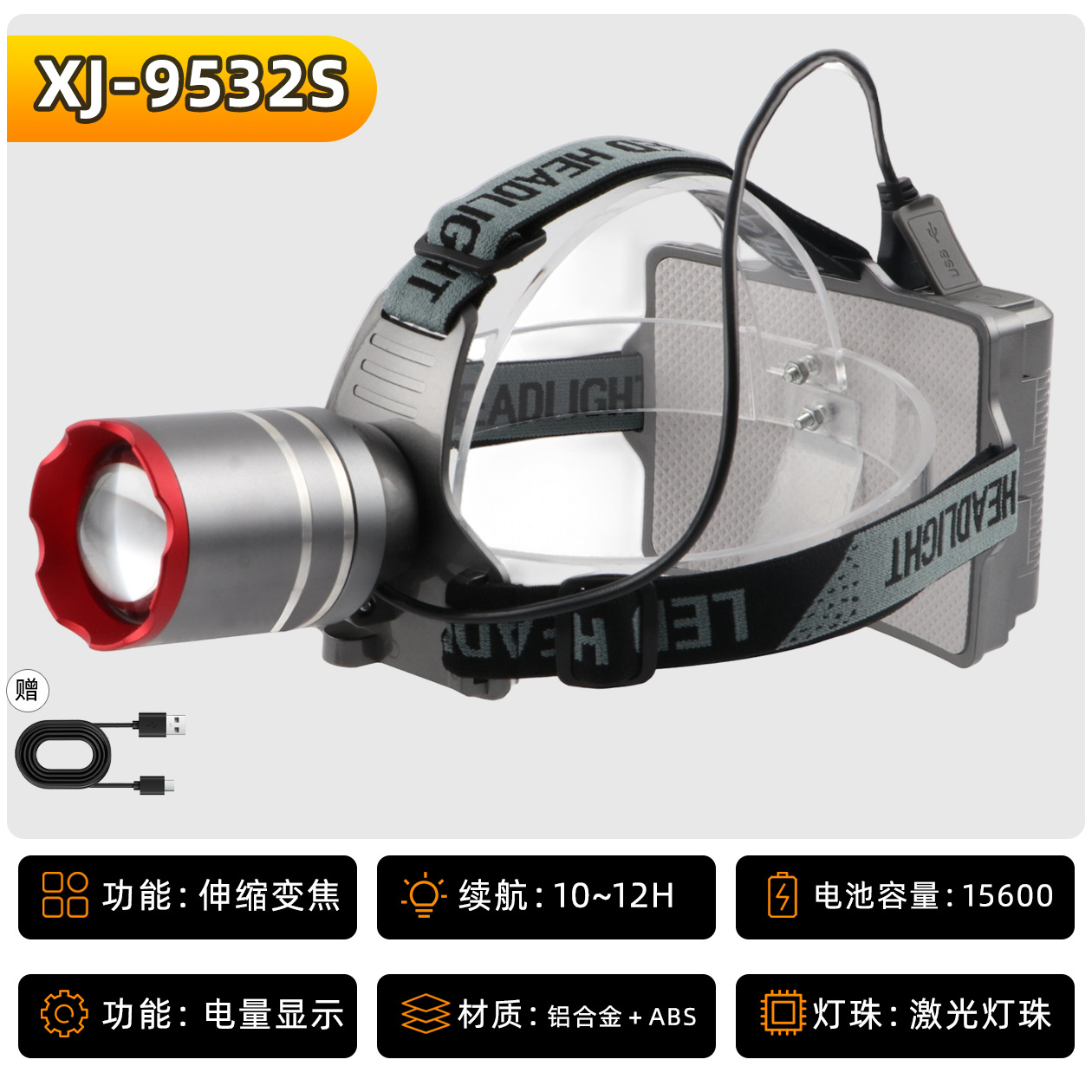 • XJ-9532S 헤드 조절식 줌 기능 6단 18650 리튬 배터리 15600mAh, 강력한 빛으로 10시간 사용 가능