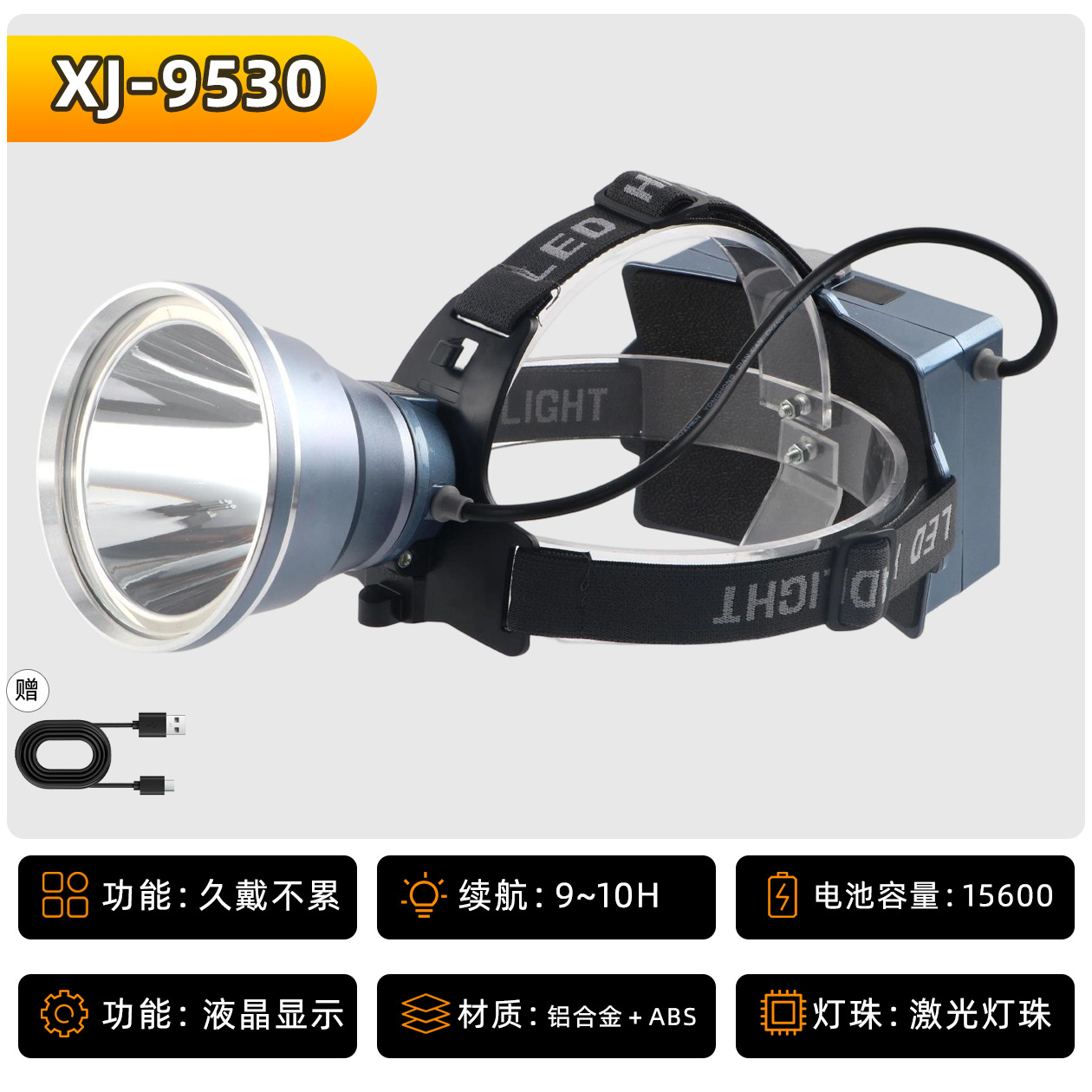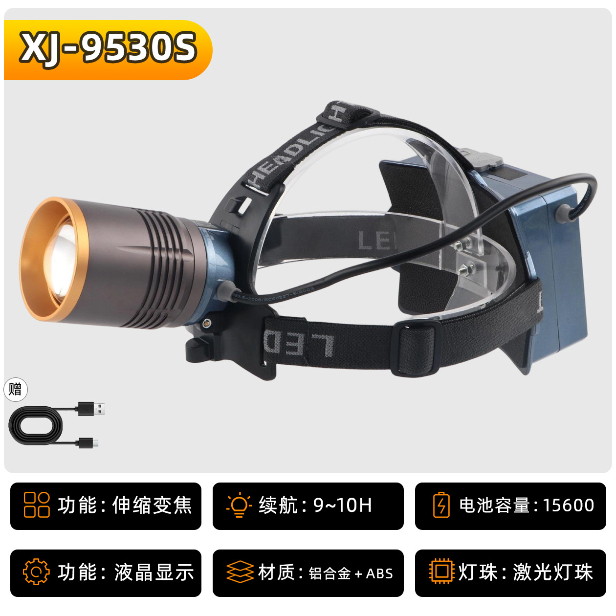 • XJ-9530S 헤드 조절식 줌 기능 6셀 18650 리튬 배터리 15600mAh, 강력한 빛으로 9시간 사용 가능