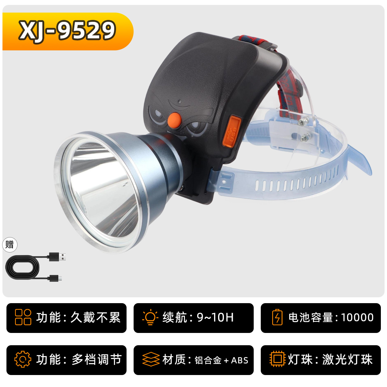 • XJ-9529S 헤드 조절식 줌 기능 4단 18650 리튬 배터리 10000mAh, 강력한 빛으로 9시간 사용 가능