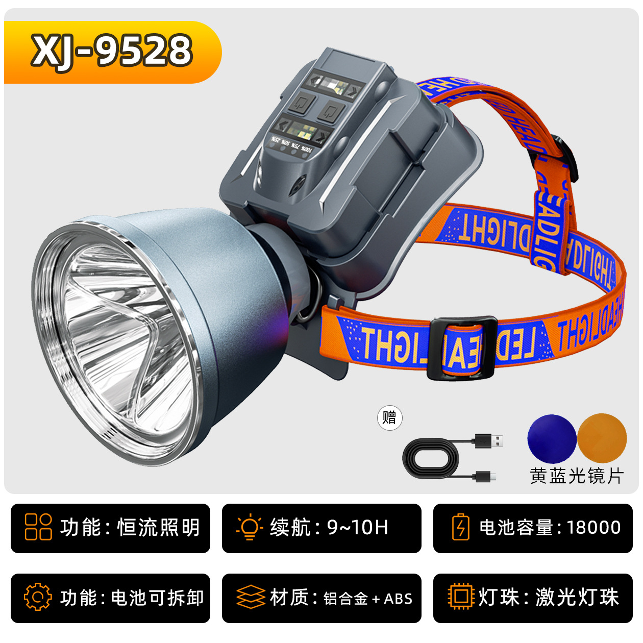 • XJ-9528 밝기 저하 없이, 21700 리튬 배터리 4개 장착, 18000mAh, 정전류 방전 9시간 지속
