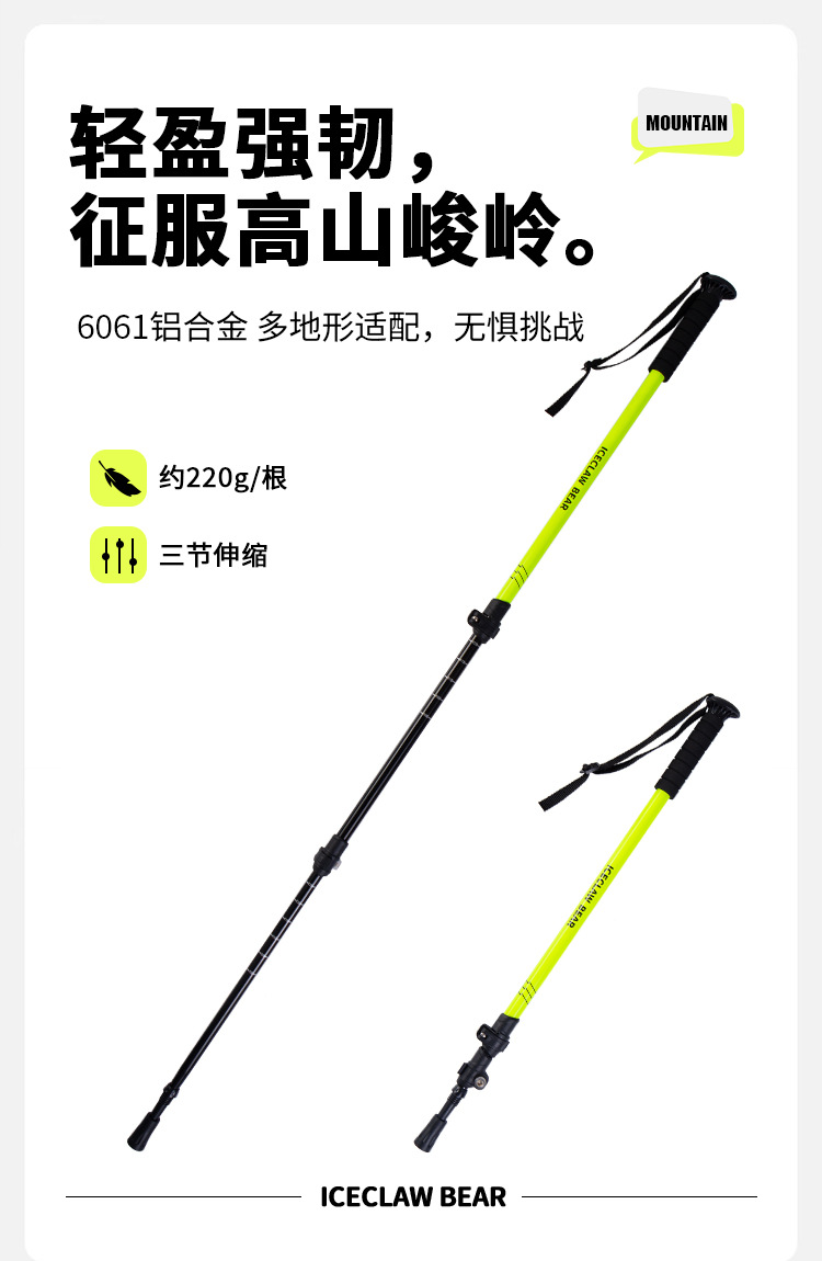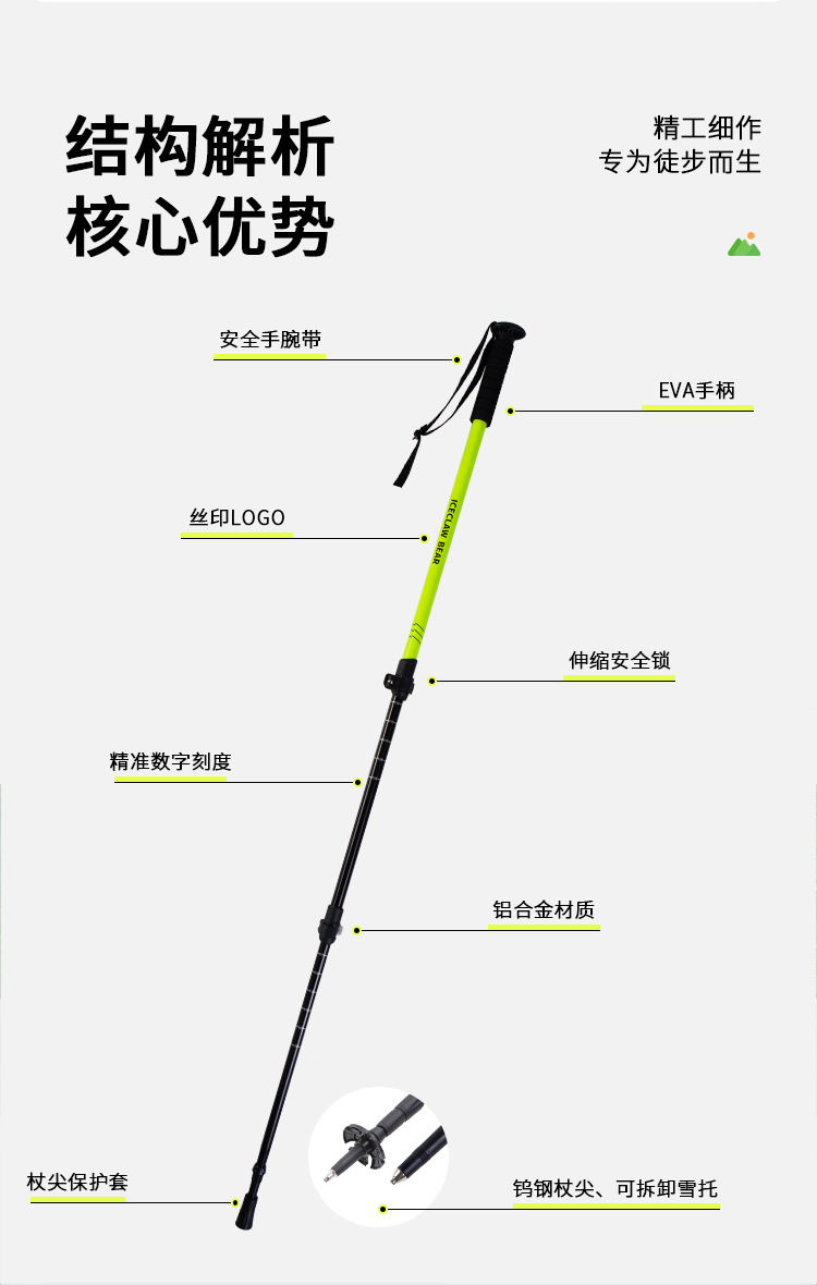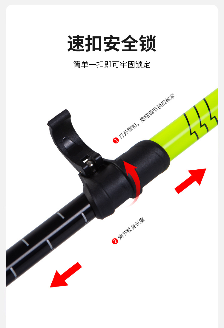 공장 야외 알루미늄 합금 외부 잠금 텔레스코픽 하이킹 스틱 초경량 하이킹 스틱 미끄럼 방지 하이킹 전문 스틱스토어 가기