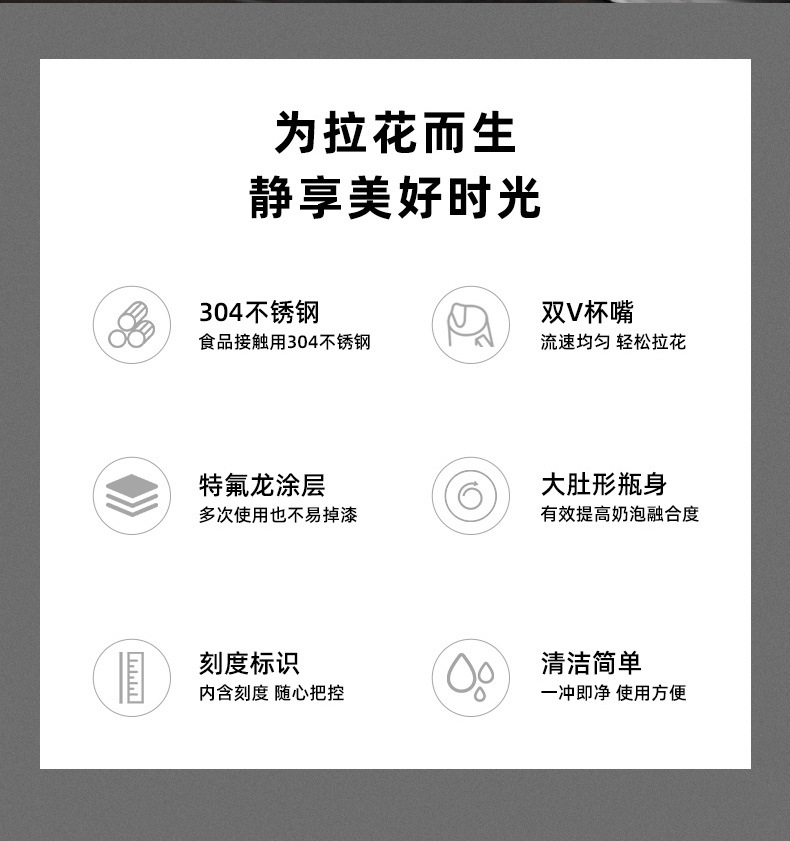두꺼운 304 스테인레스 스틸 커피 라떼 아트 컵 전문 커피 머신 우유 거품 컵 기기스토어 가기