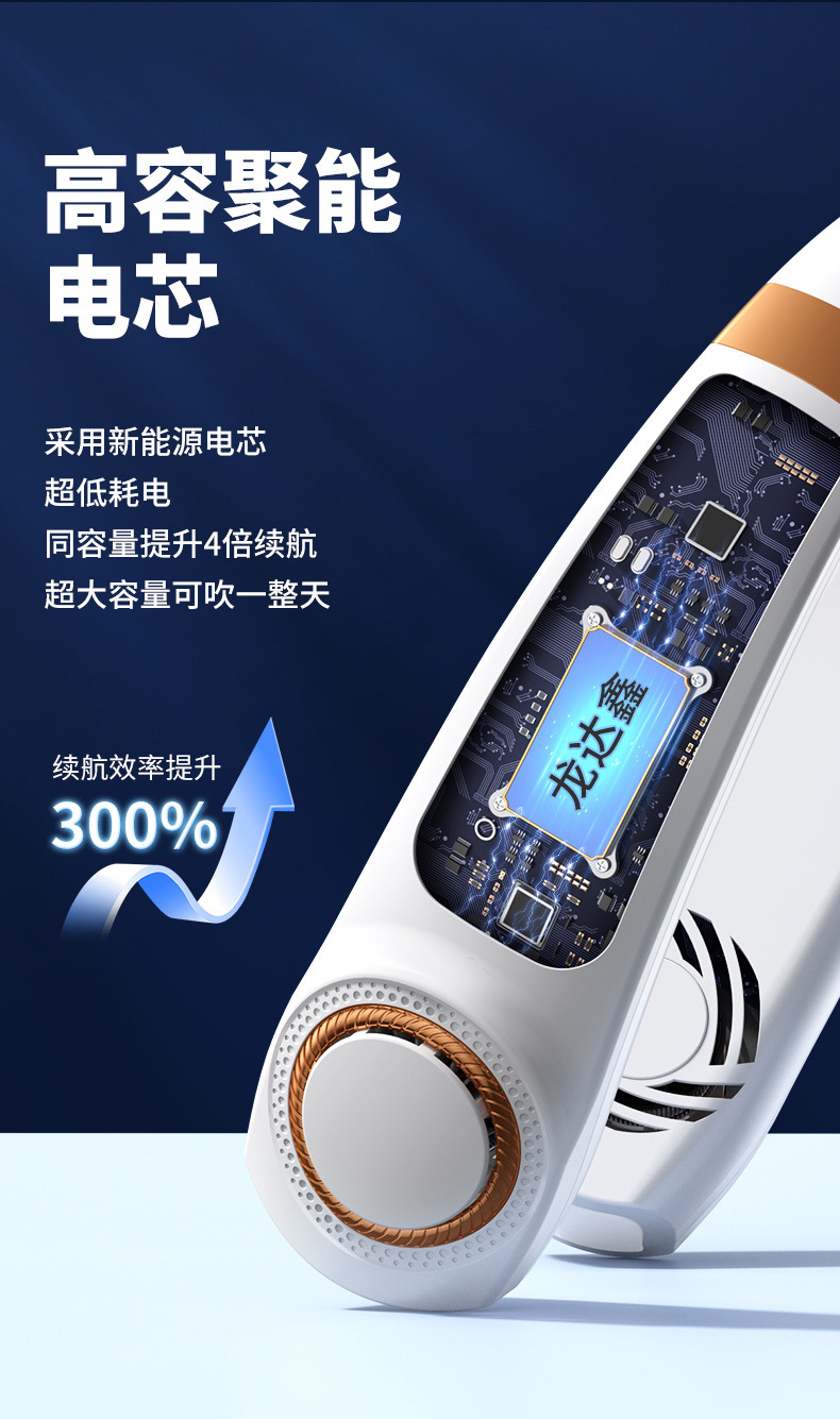 2024 새로운 스타일 홀터넥 미니 팬 휴대용 USB 충전 자동 강풍 여름 얼음 도자기 팬 야외스토어 가기