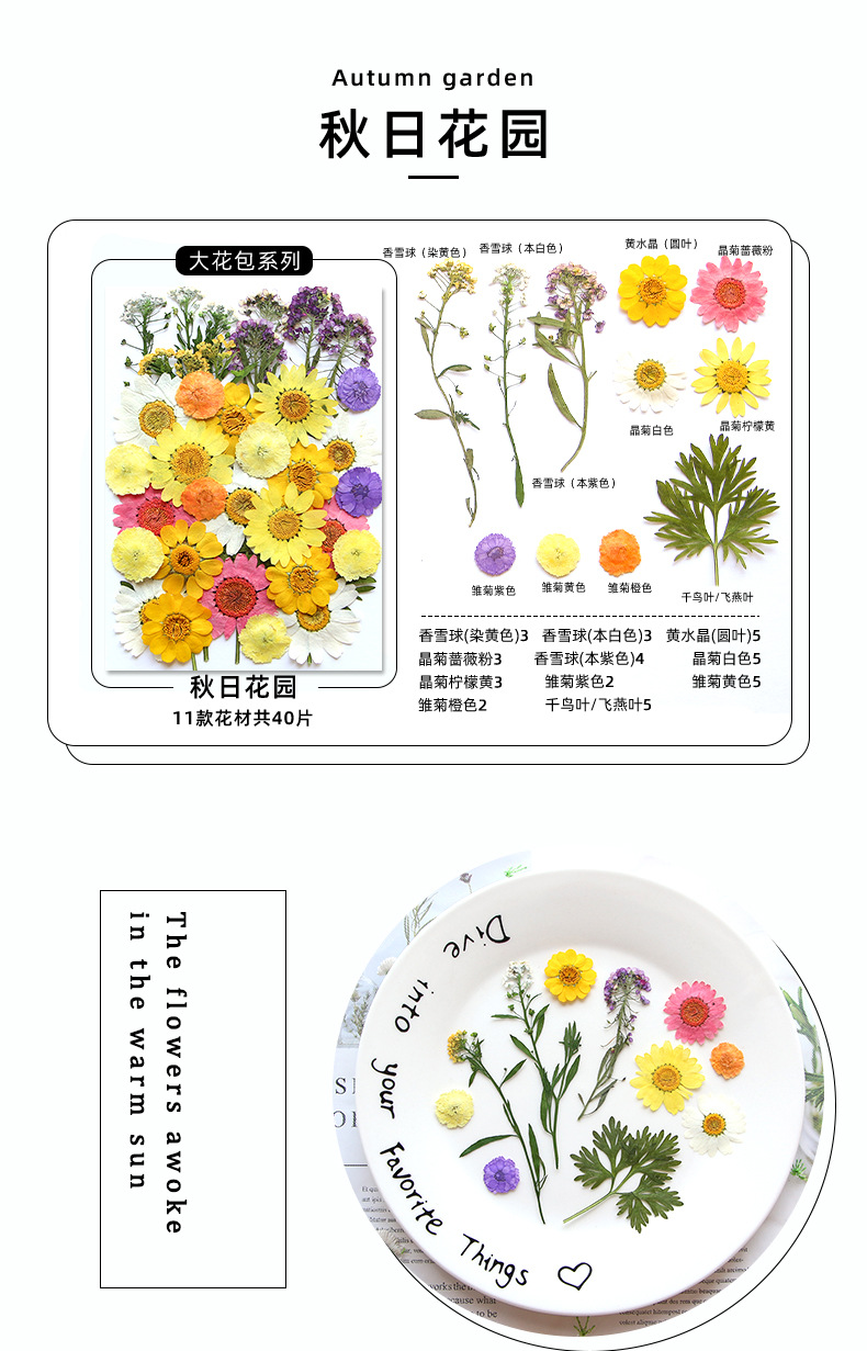 말린 꽃 DIY 양각 DIY 양각 재료 패키지 사진 꽃잎 책갈피 실제 꽃 접착제 말린 잎 식물 표본스토어 가기