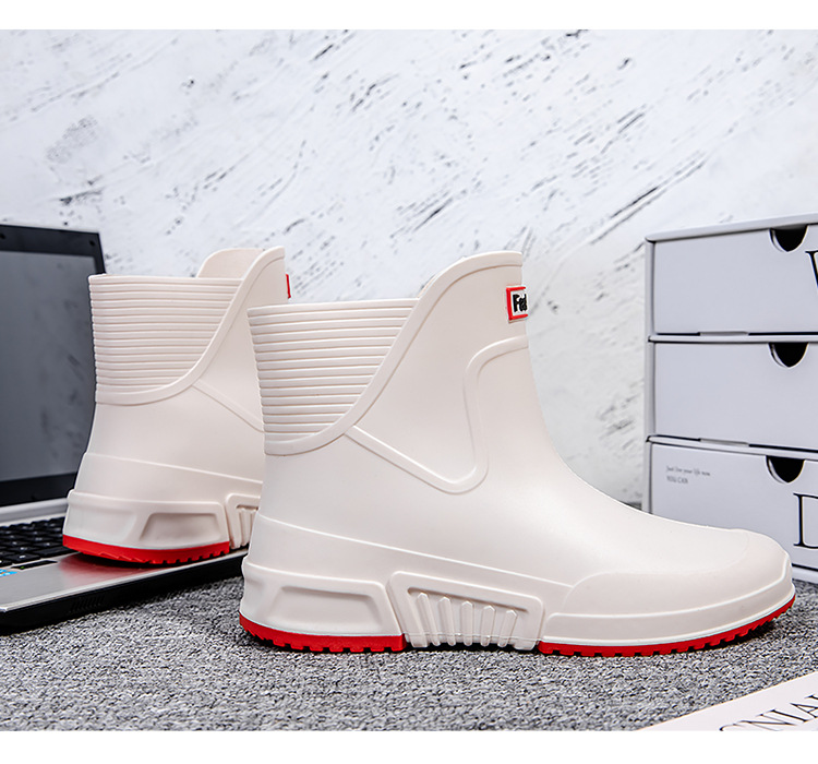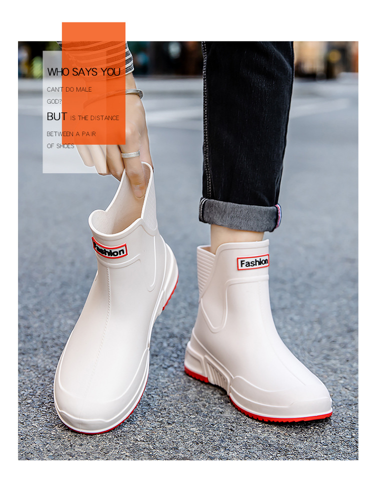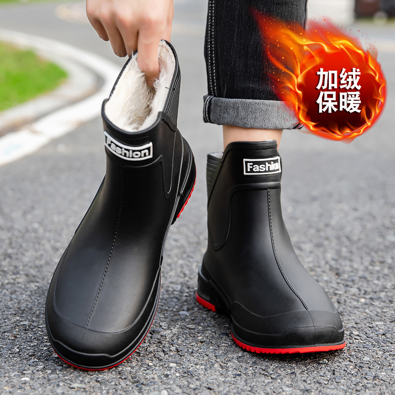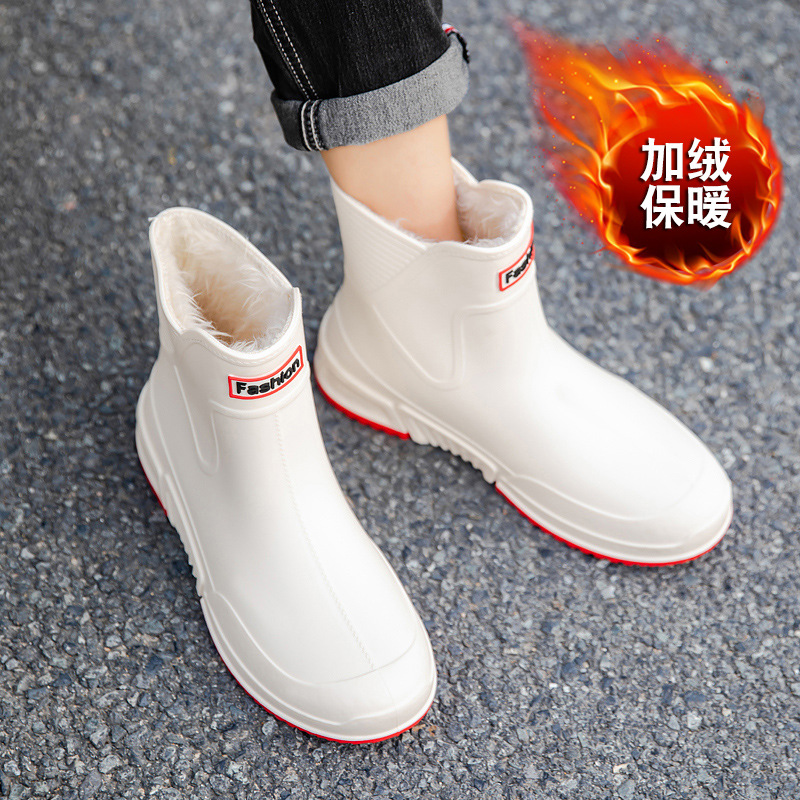 커플을 위한 레인부츠, 새로운 종아리 중간 레인부츠, 방수 고무신, 따뜻한 짧은 종아리 워터부츠, 패셔너블한 주방 미끄럼 방지 대형 여성화스토어 가기