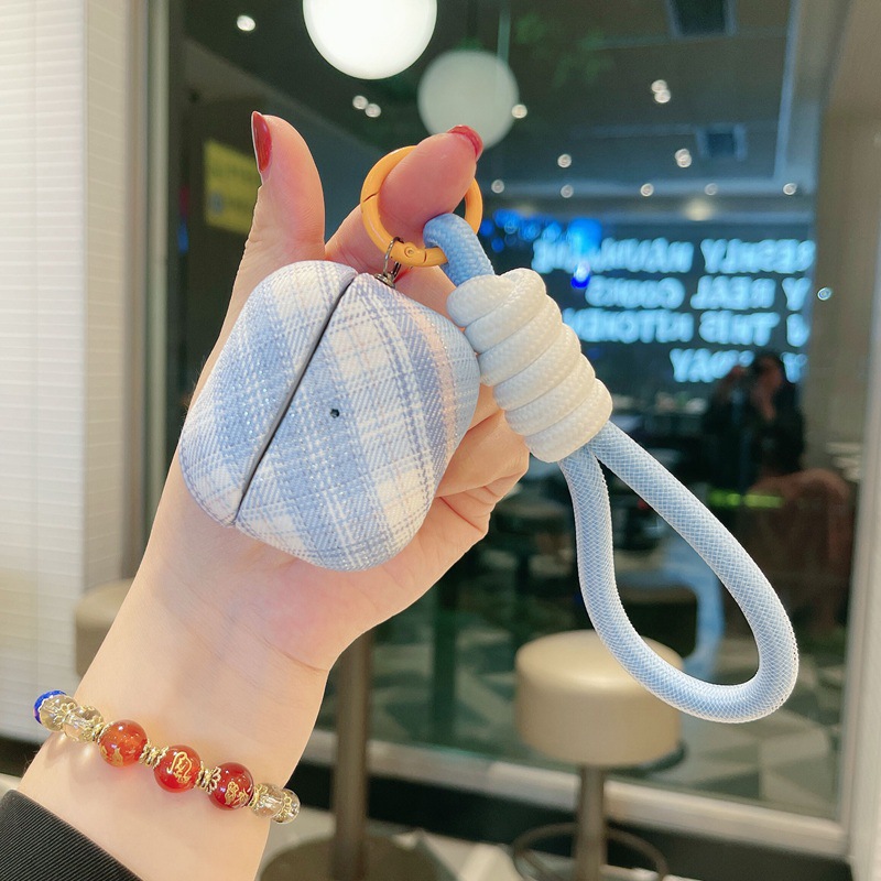 • 【트윌 체크 무늬 이어폰 케이스☆바바 블루☆끈은 포함되어 있지 않습니다]