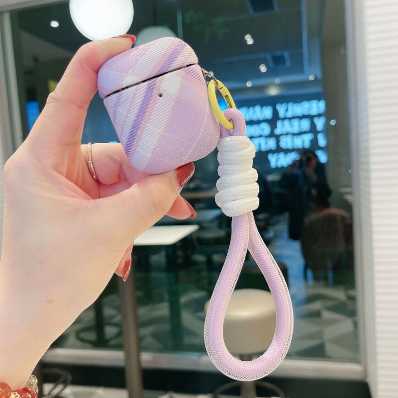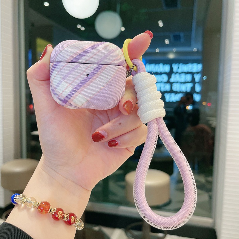 • 【트윌 체크 무늬 이어폰 케이스☆바바오 퍼플☆끈은 포함되어 있지 않습니다]
