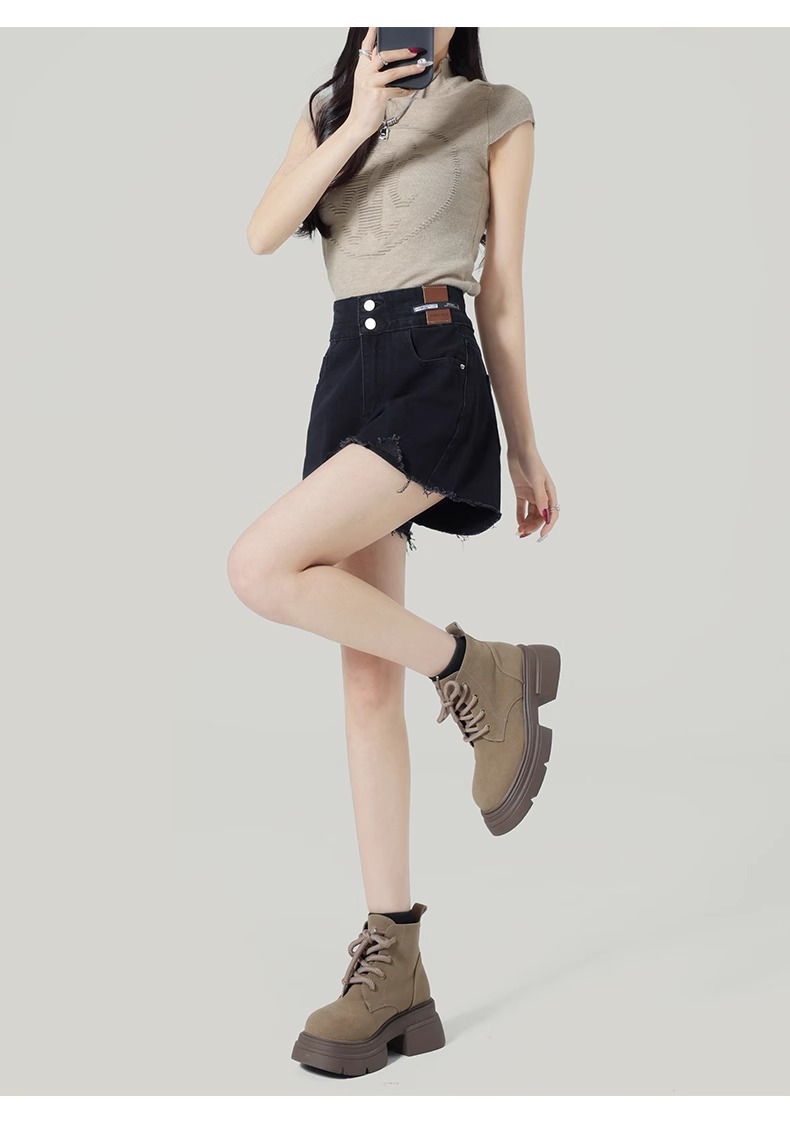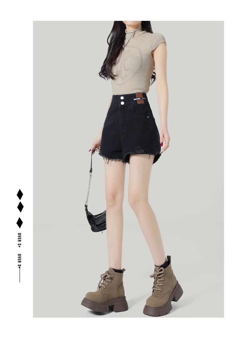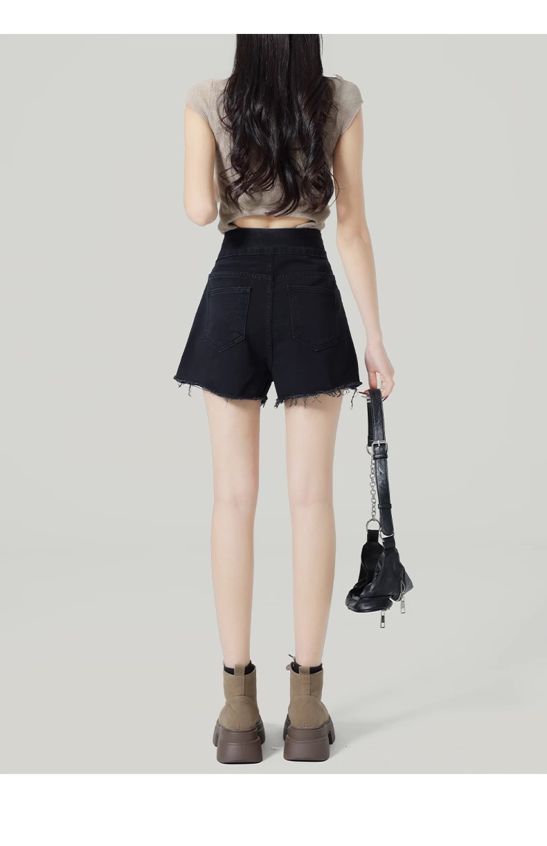 블랙 와이드 레그 A 자형 데님 반바지 여성 여름 2025 뉴 플러스 사이즈 하이 웨이스트 슬리밍 울트라 쇼트 핫 팬츠스토어 가기