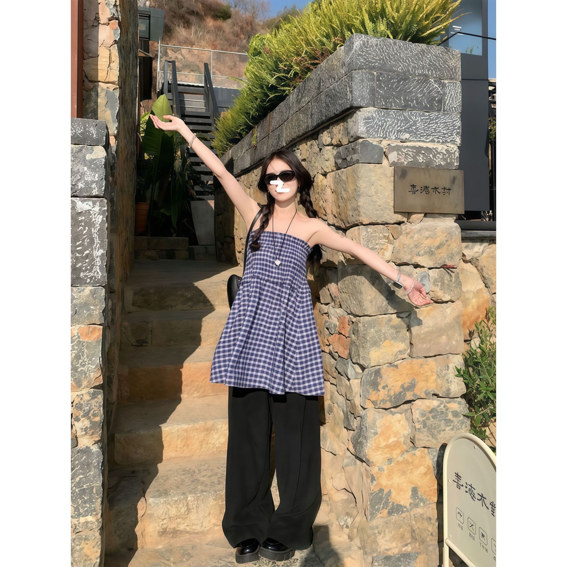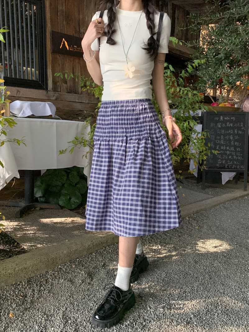 2025 틈새 디자인 블루 체크 무늬 스커트 여성용 튜브 탑 A 라인 스커트 소녀 패션 드롭 배송스토어 가기