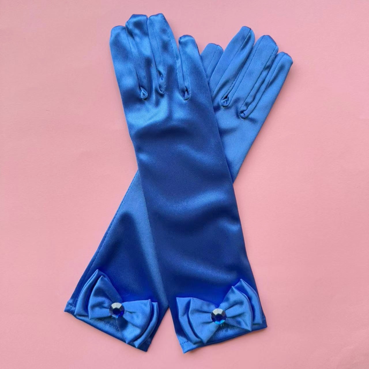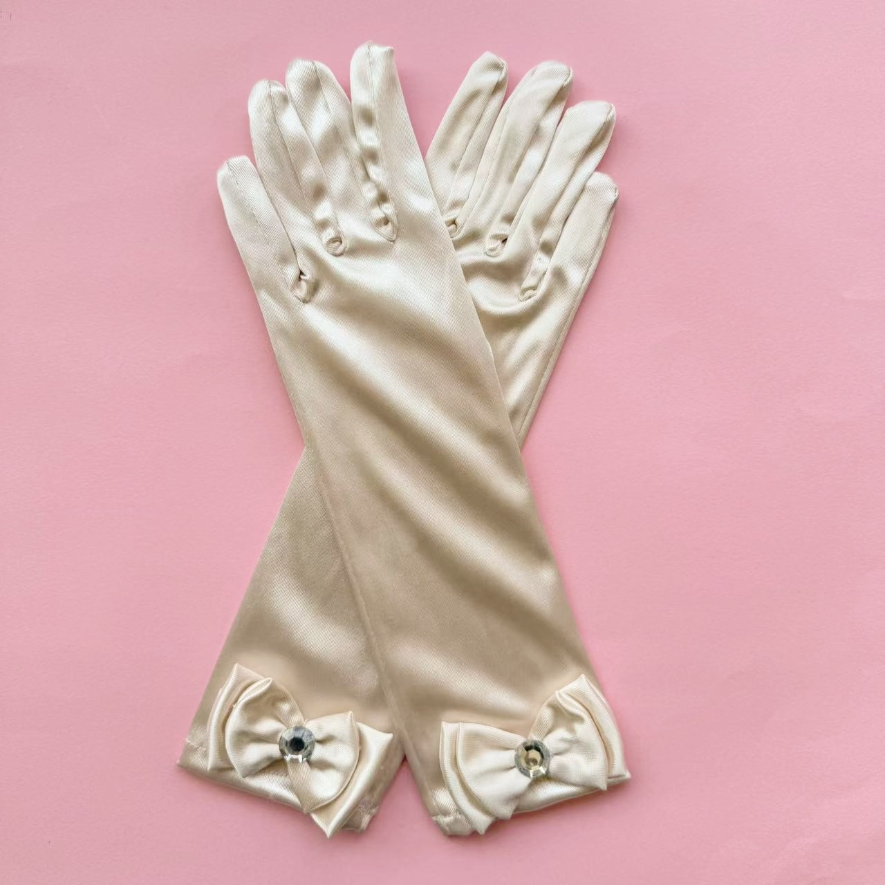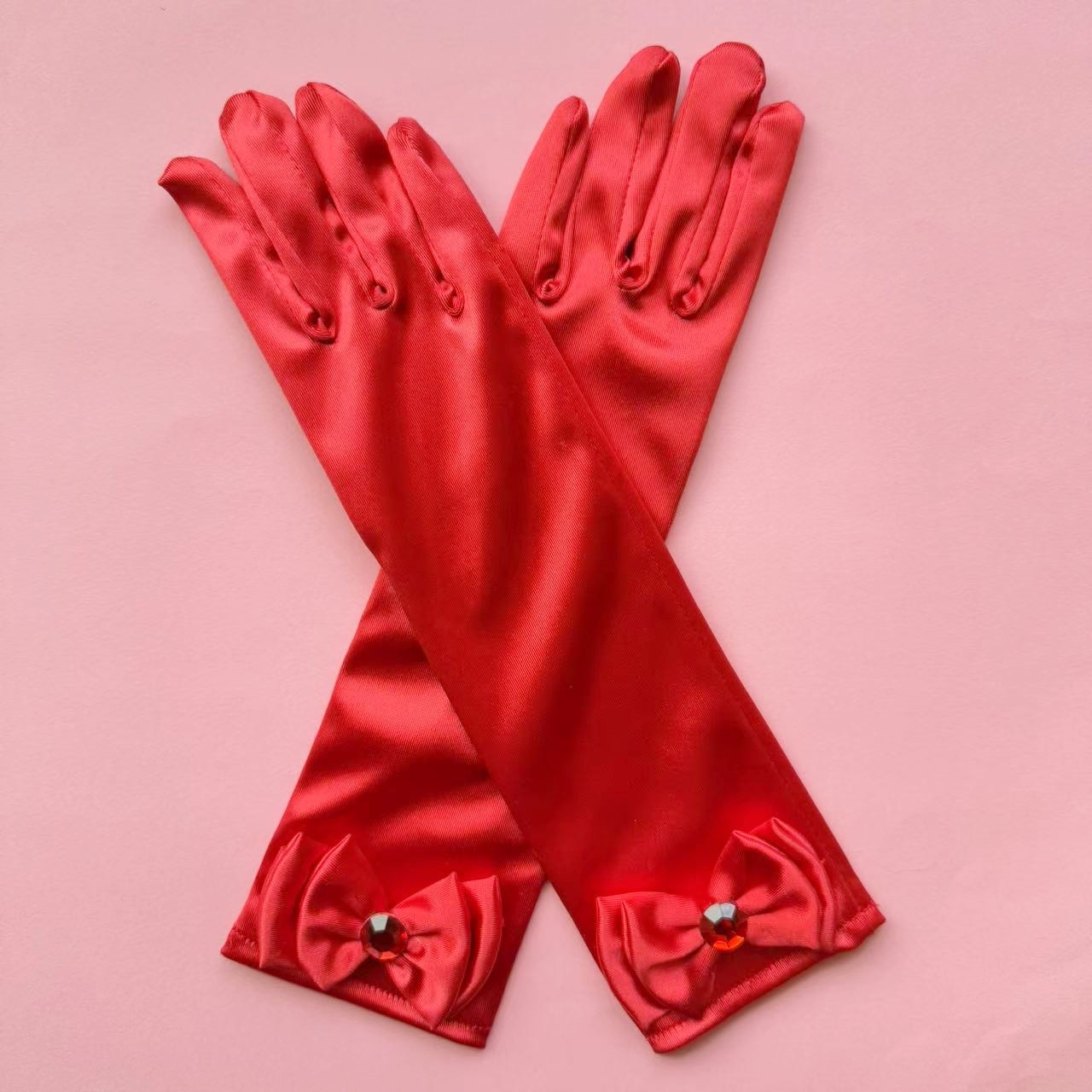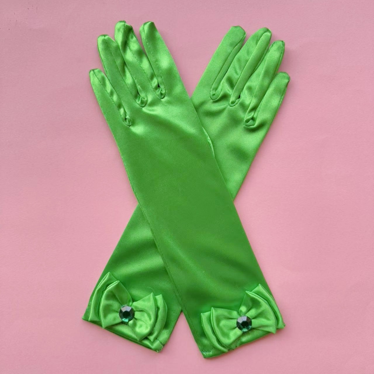 儿童色丁蝴蝶结舞蹈手套