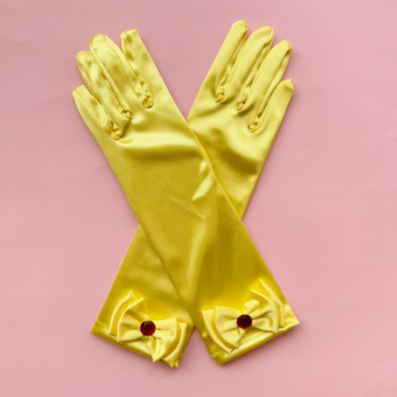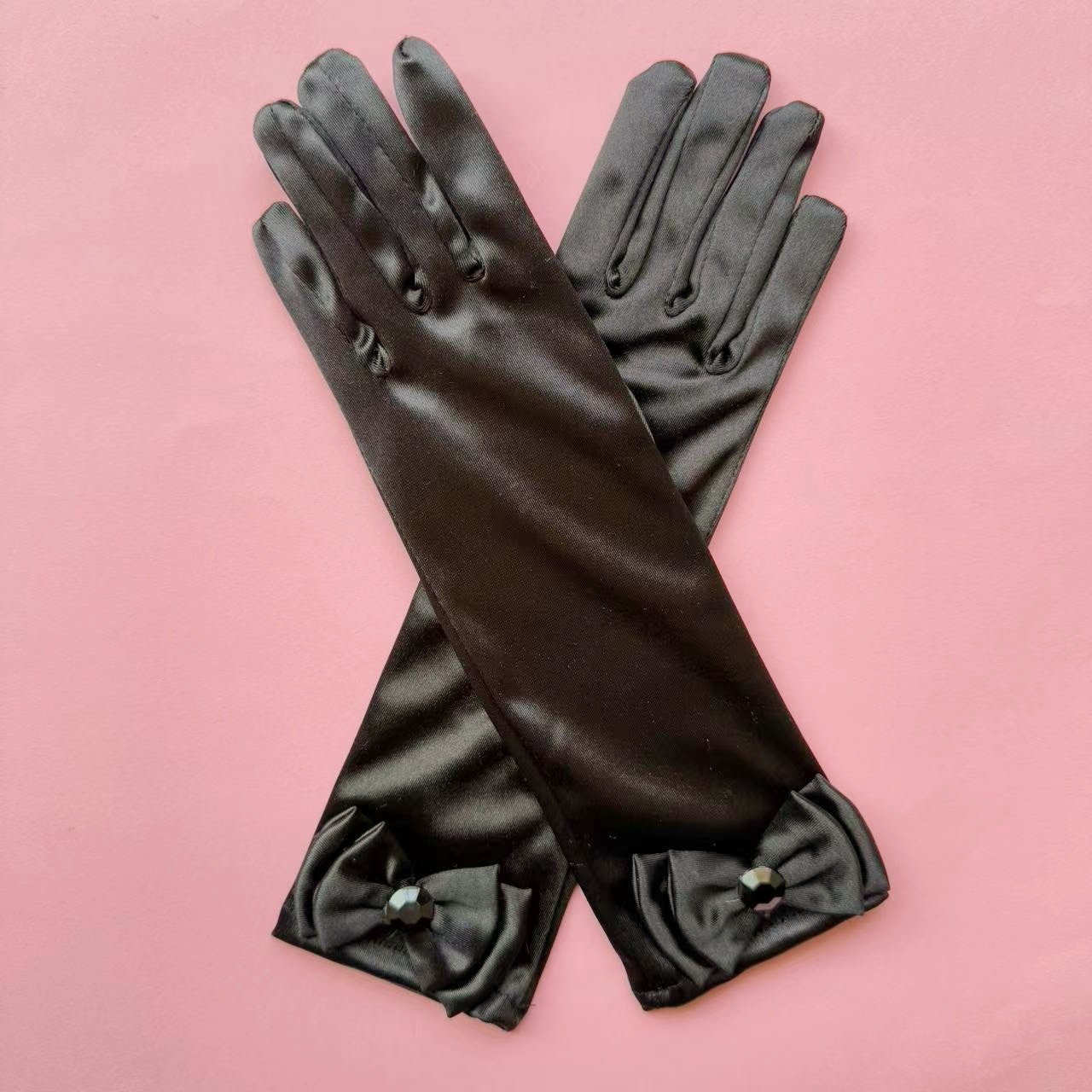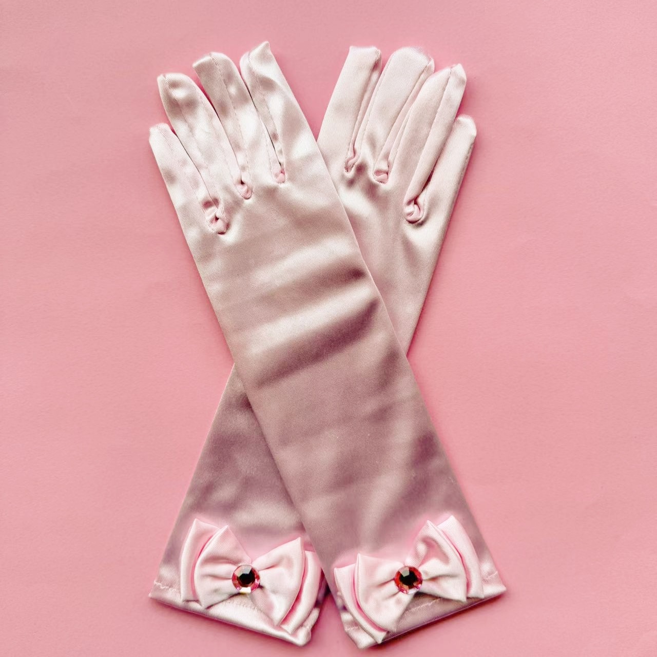 儿童色丁蝴蝶结舞蹈手套