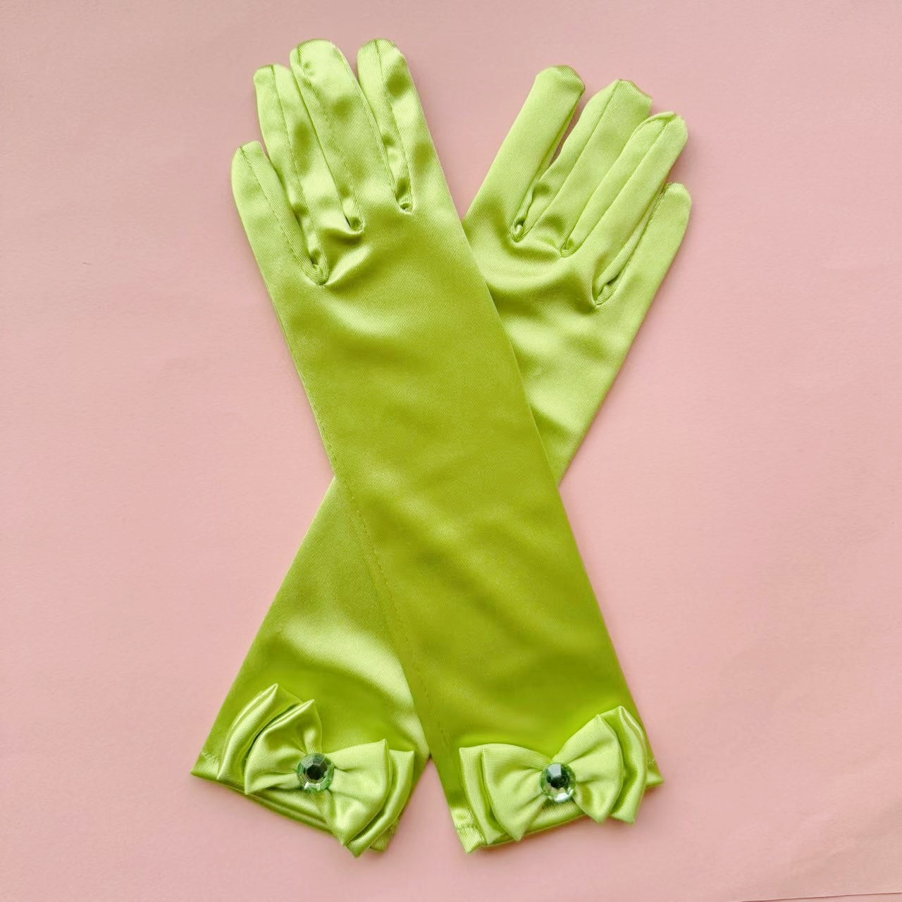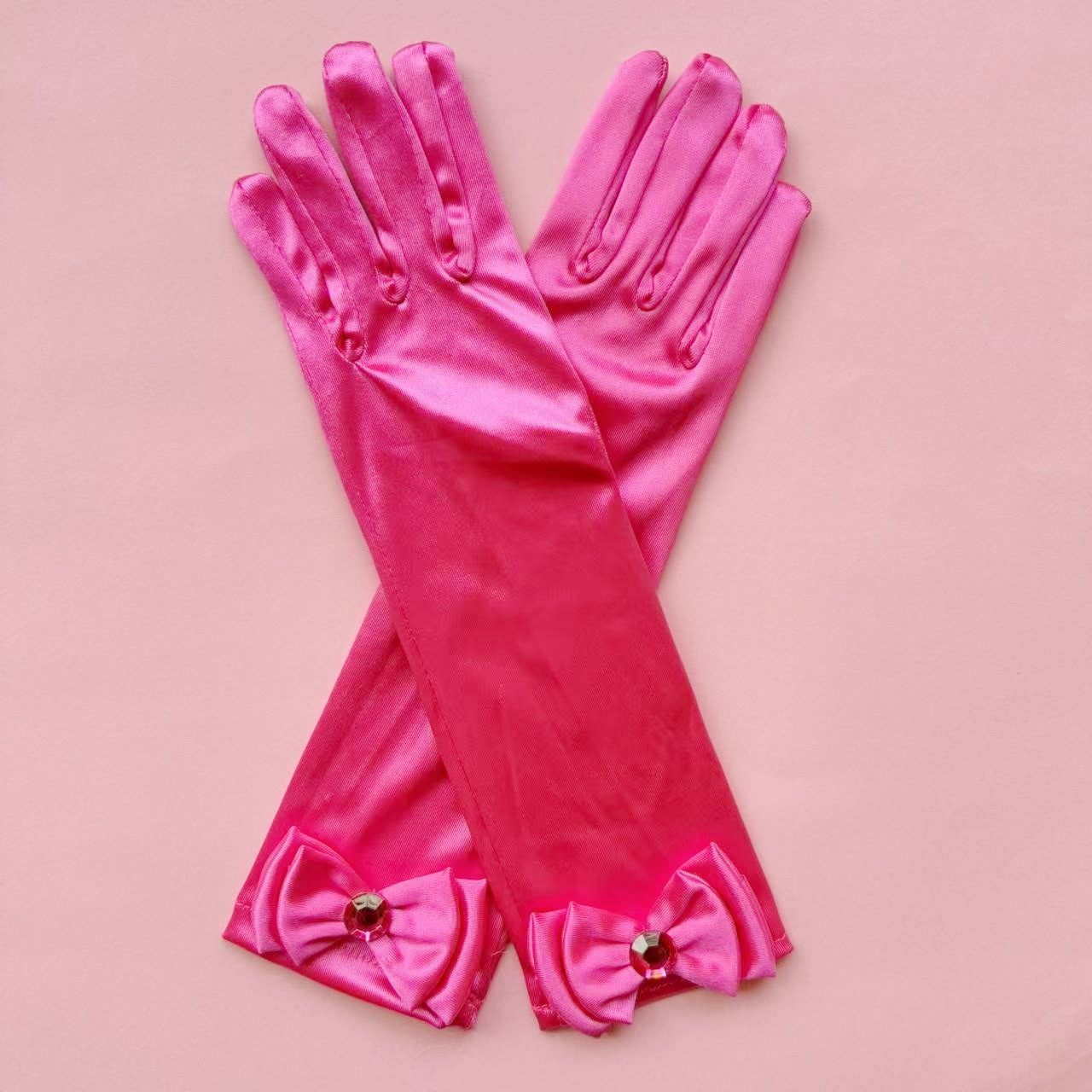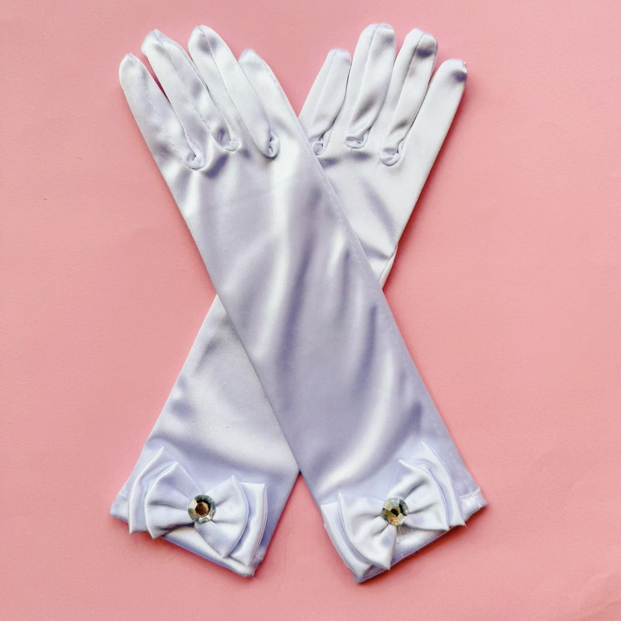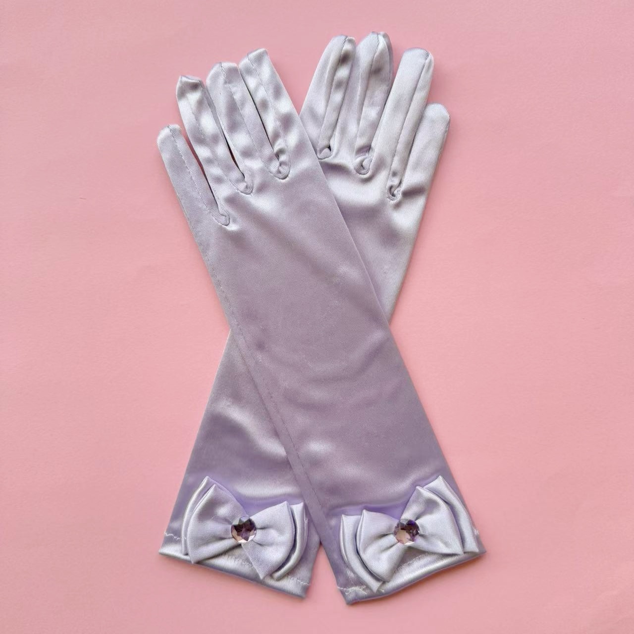 儿童色丁蝴蝶结舞蹈手套